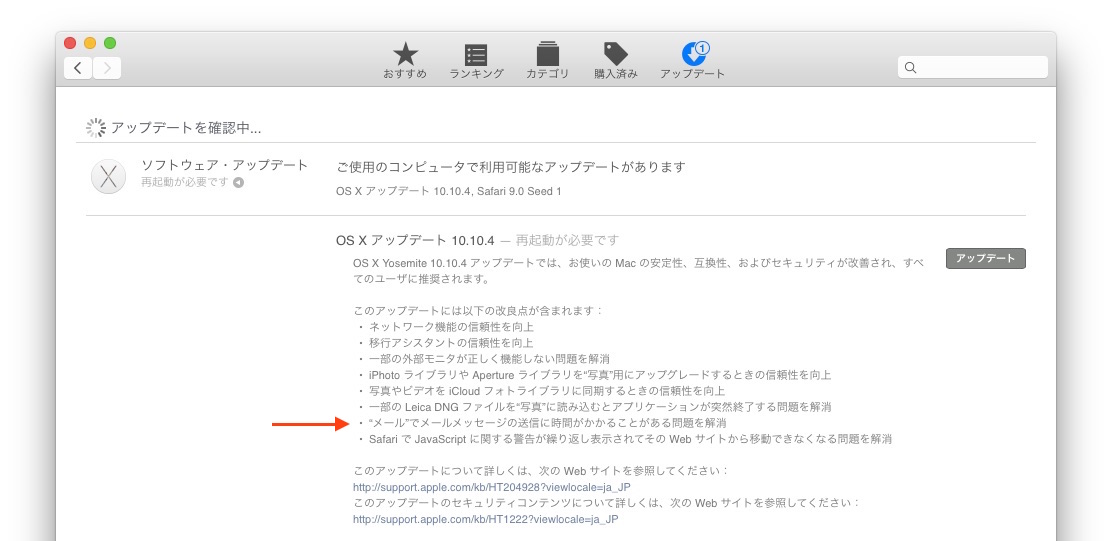 6月30日にリリースされたOS X 10.10.4 Yosemiteですが、このアップデートを適応後 OS XのメールアプリでGmailアカウントのメールが受信できない(オンラインにならない)という不具合がApple Support Communities [1, 2, 3]やTwitterなどで報告されているようです。