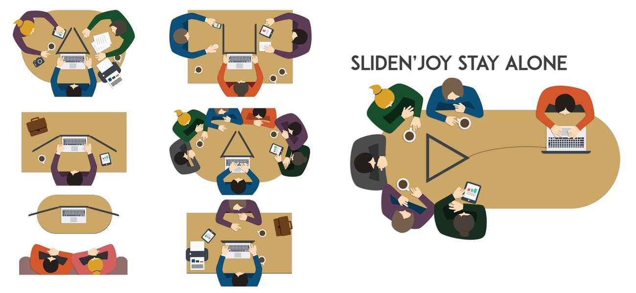 Slidenjoyはトリプルディスプレイとして使用する事はもちろん、取り外して会議などで複数人に資料を見せるといった状況でも役立つとしています。