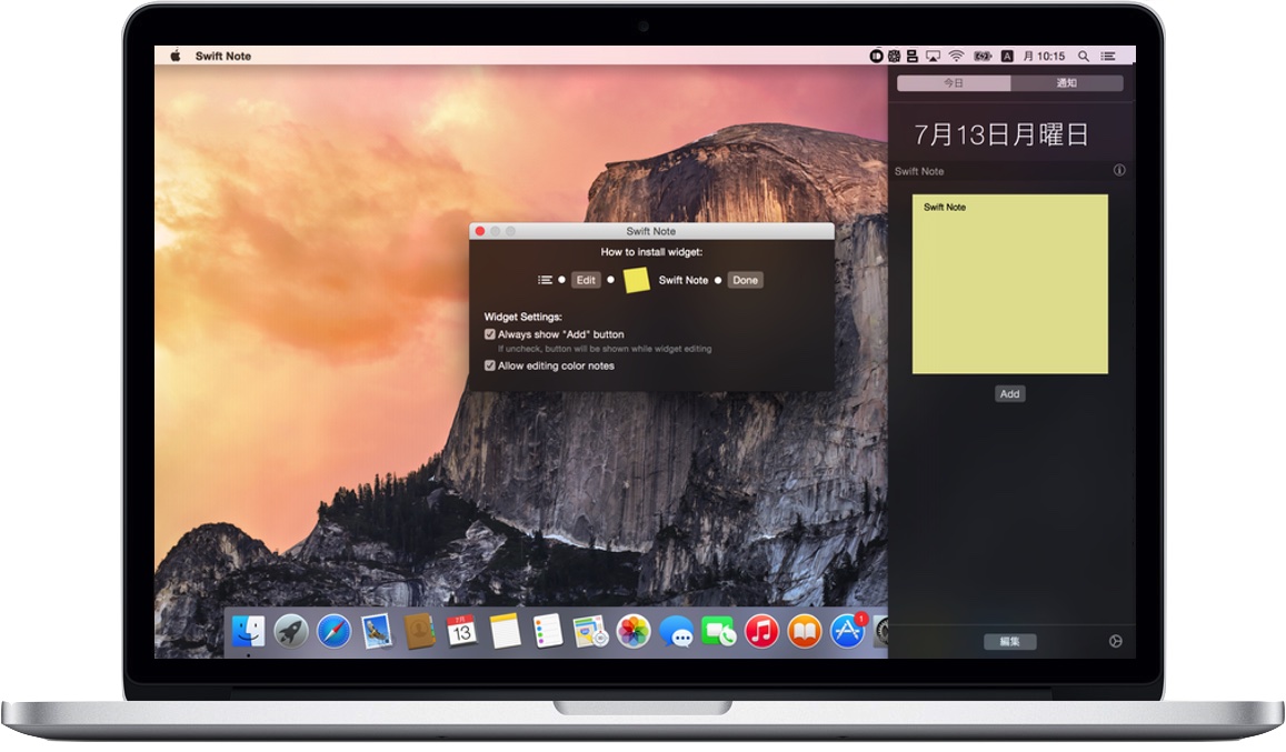OS X Yosemiteの通知センターに付箋を設定できるウィジェット「Swift Note」が無料セール中です。詳細は以下から。