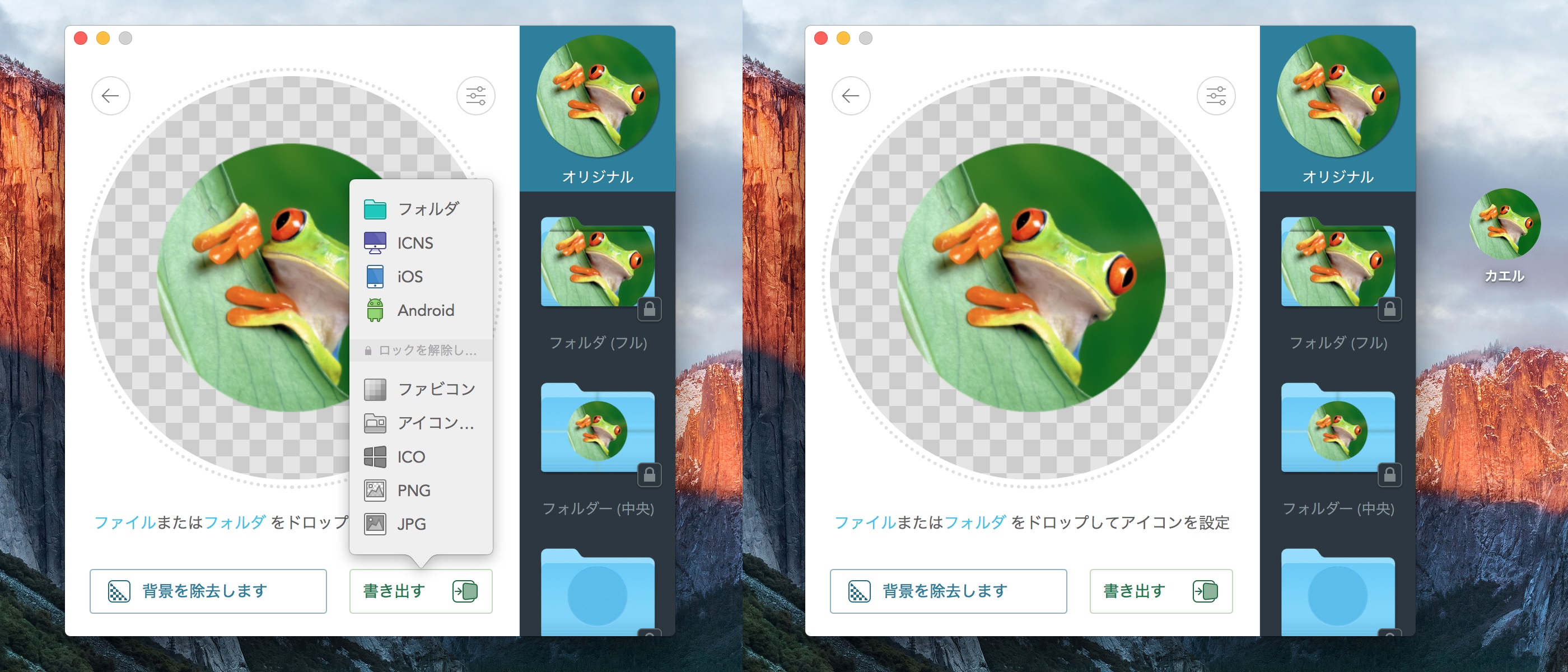 全機能を使用するには1200円ですが、フォルダアイコンの変更とOS X, iOS, Android, watchOS用アプリアイコンの作成は無料で出来るので、興味のある方はどうぞ。