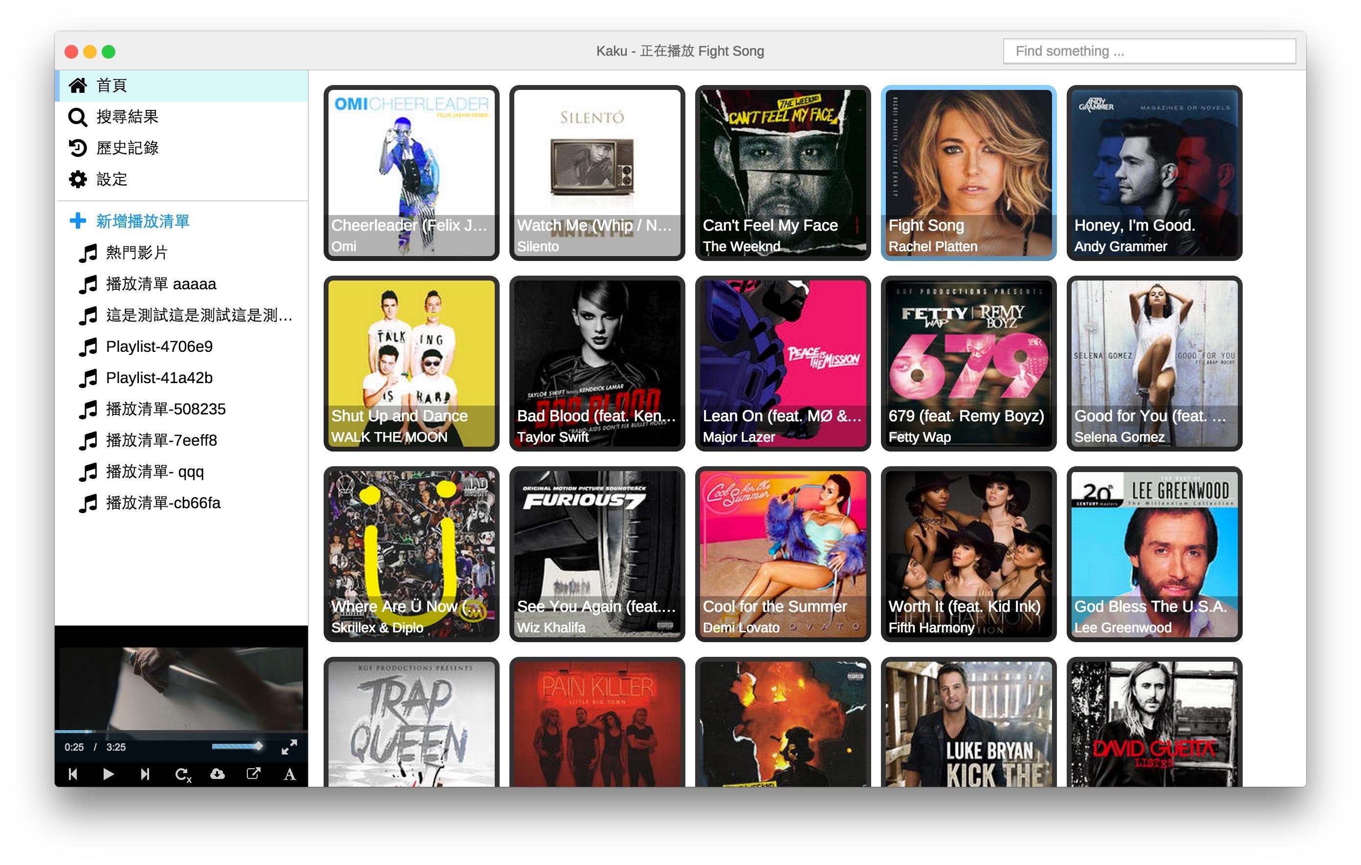 In our design, Kaku should be an awesome music player which supports differnt music sources like YouTube, Baidu, Vimeo … etc. If you are interested with our following releases that may support other different sources, please go like our Facebook page for our updates !