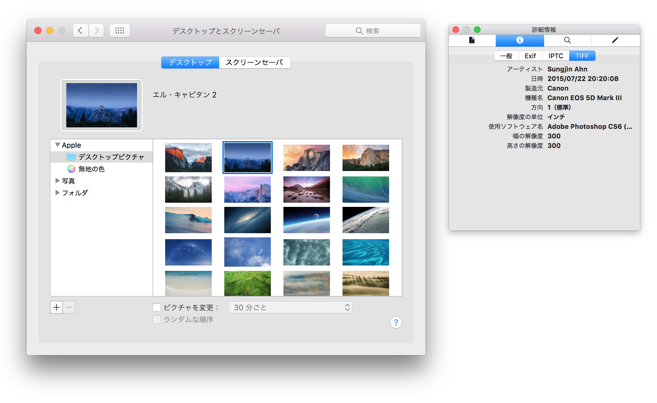 この壁紙は5K(5120 x 3200)解像度でファイルサイズは12.2MB、撮影者はSungjin Ahnさんとなっています。使用してみたい方は”/Library/Desktop Pictures”ディレクトリか、どこかのCDNからダウンロードして下さい。
