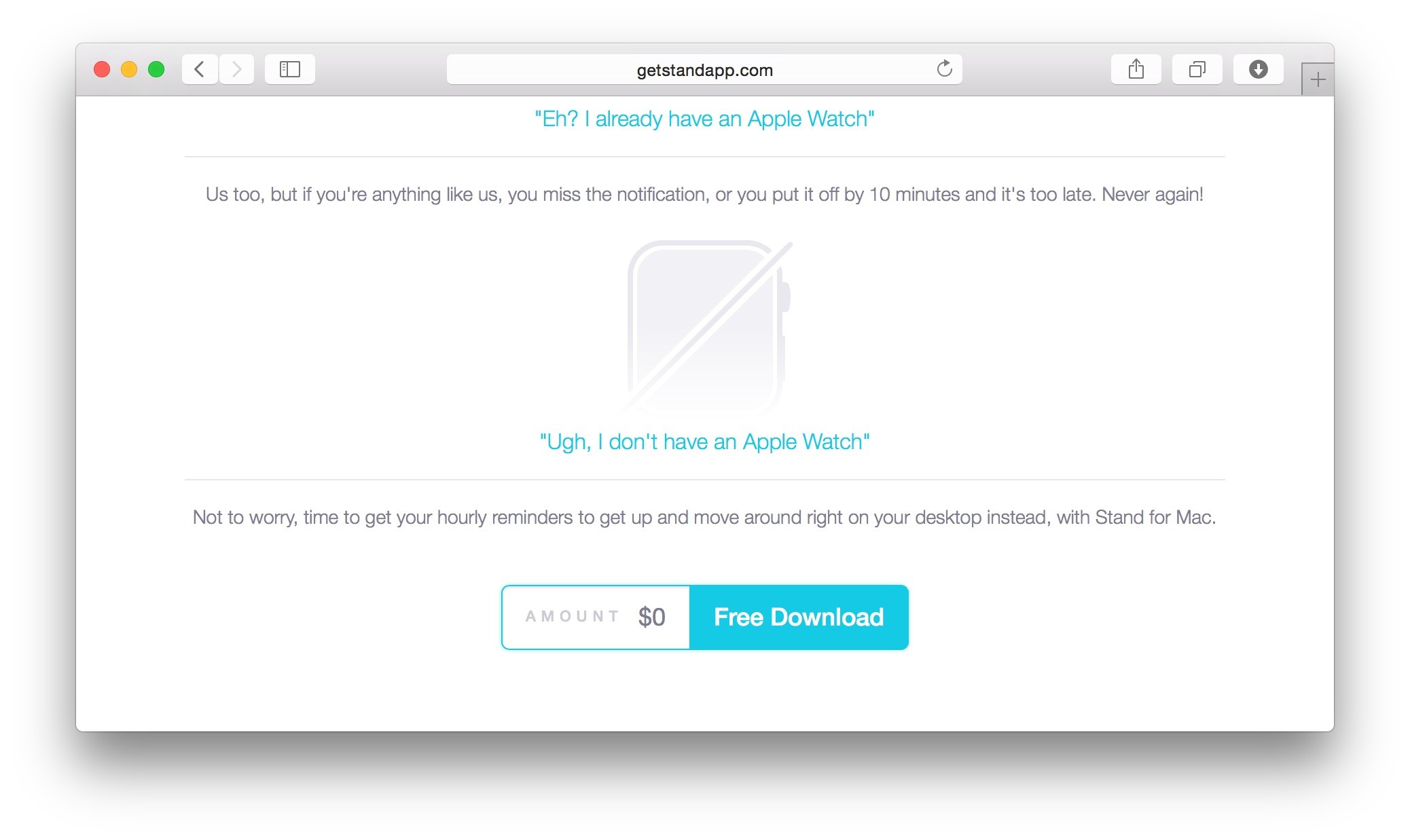 We’re a little Mac app that reminds you to stand up every hour 🙂 Download now at https://t.co/ZRN788NKkN http://t.co/tBzFAVnwpl