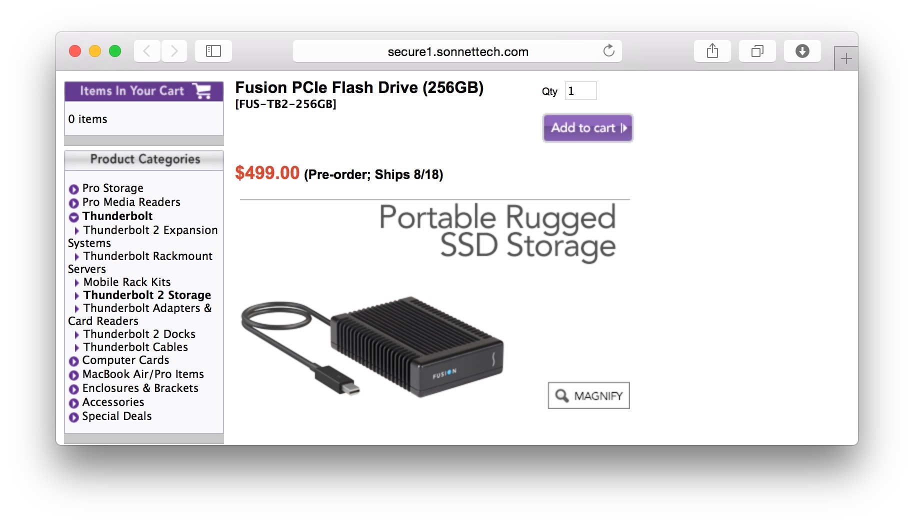 Sonnet designed the Fusion PCIe Flash Drive around a Gen 3 M.2 PCIe SSD module, the fastest standard SSD type now available and capable of maximizing the the bandwidth of the included 20Gbps Thunderbolt 2 interface. […] Capable of transferring files at 1350 MB/s, the Fusion PCIe Flash Drive incorporates a PCIe Gen 3 flash controller, enabling the device to significantly outperform 6Gb/s SATA SSDs and USB 3.0 flash drives.