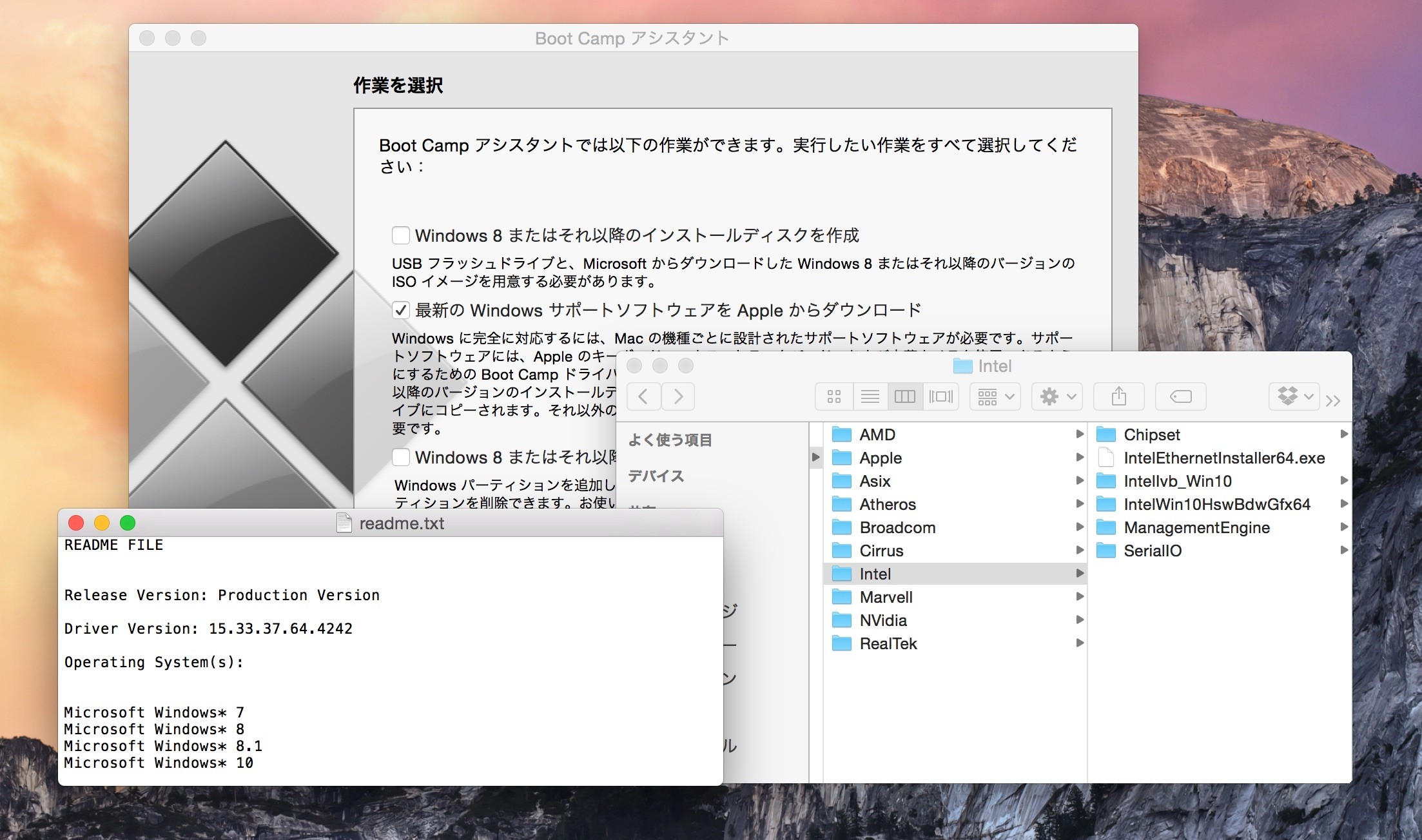 Windows 10用ドライバはWindowsの”Apple Software Update”およびOS Xの”Boot Camp Assistant”からもダウンロード可能となっていたので、Boot CampでWindows 10を使用している方はアップデートしてみてください。