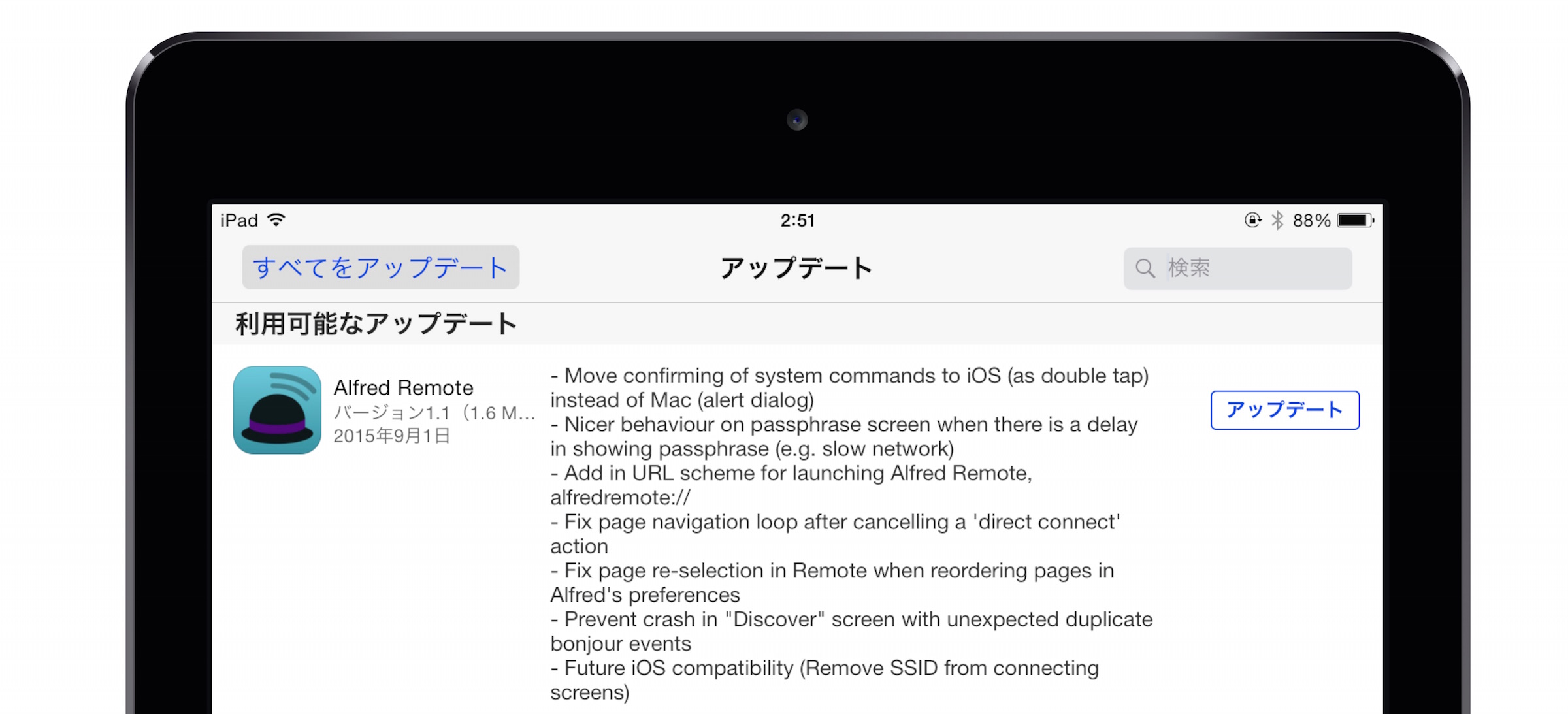 Alfredが新たに Alfred 2.7.2 および Alfred Remote 1.1をリリースしています。Alfred Remote 1.1では新たにシステムコマンドを実行する際に確認が必要となった他、Macとの遅延が解消、URLスキームでの起動、iOS 9への対応などが行われているそうです。