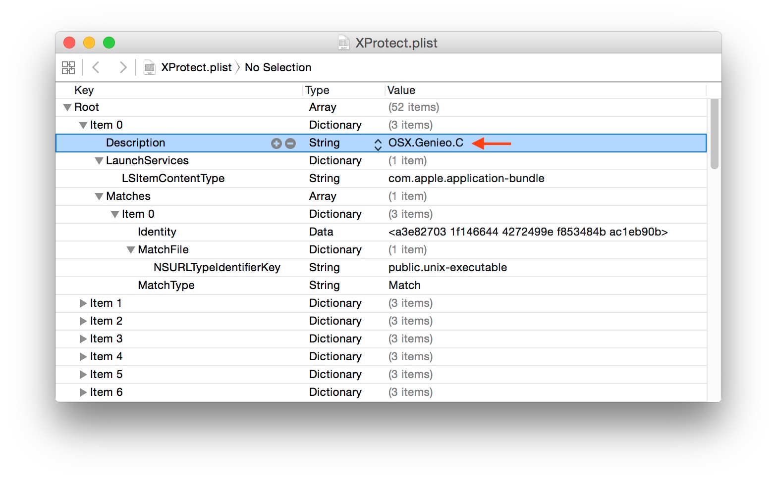defaults read /System/Library/CoreServices/CoreTypes.bundle/Contents/Resources/XProtect.meta Version