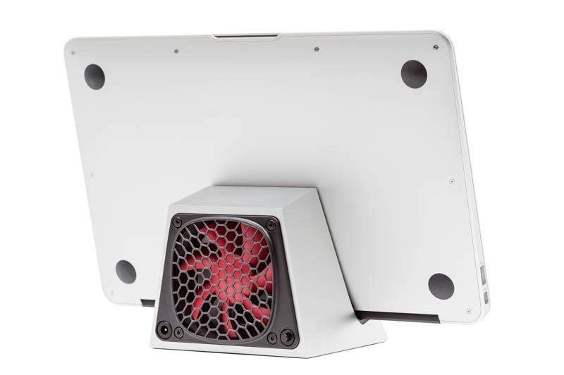 今年5月、米オレゴン州のSvalt Design, LLCという会社がMacBookを立てかけ、MacBookの吸気口から80角ファンで空気を送ることでMacBookを冷却するクーリングファン”SVALT D”という商品を発売していましたが、このSVALT DがThe Loopのスポンサーになり詳細なベンチマークテストの結果を公開しているようです。