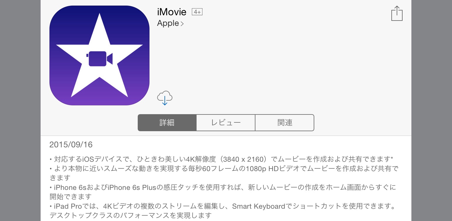 iMovie for iOS v2.2では新たに4K(3840×2160)のムービーを作成および共有できる他、iPhone 6s と 6s Plusの感圧タッチ、iPad ProのSmart Keyboardを利用したショートカットキーなどがサポートされているそうです。