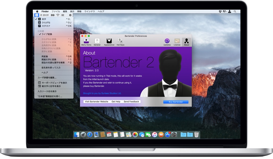Macのメニュバー拡張アプリ「Bartender」がバージョン2にアップデートし、OS X 10.11 El Capitanをサポートしています。詳細は以下から。