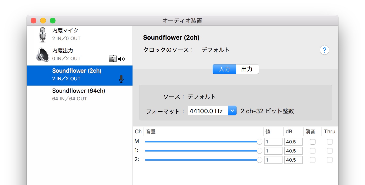 勿論システム環境設定から出力先を変えることは出来ますが、そうすると今度はSoundflowerが使えなくなります。