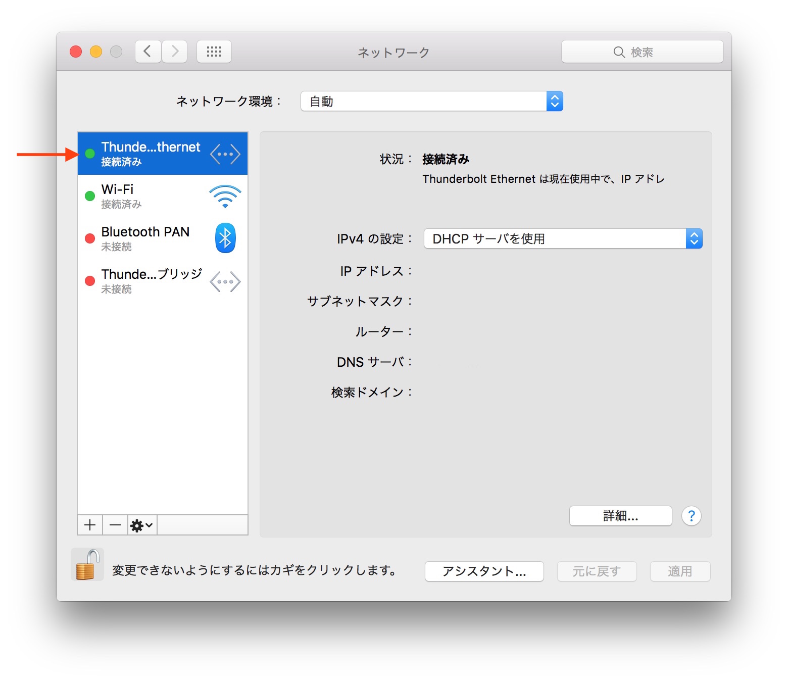 NAT64ネットワークを利用するには、まずEl Capitan搭載のMacをEthernet(有線LAN)で接続し、システム環境設定の[ネットワーク]からEthernetとWi-Fiを有効にします。