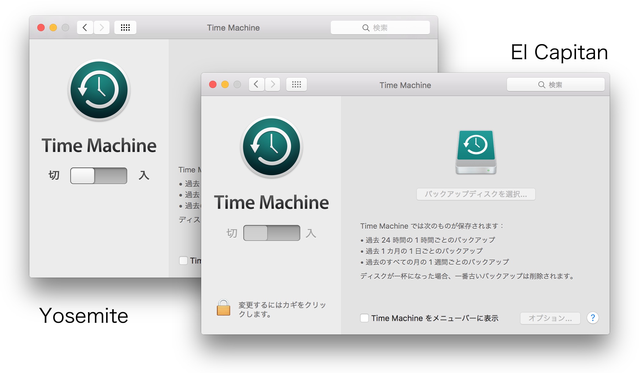 El Capitanでは新たなセキュリティ機能としてシステム整合性保護”Rootless“が搭載されましたが、システム環境設定アプリでも複数の項目でシステム設定を変更するのに認証が必要になっています。