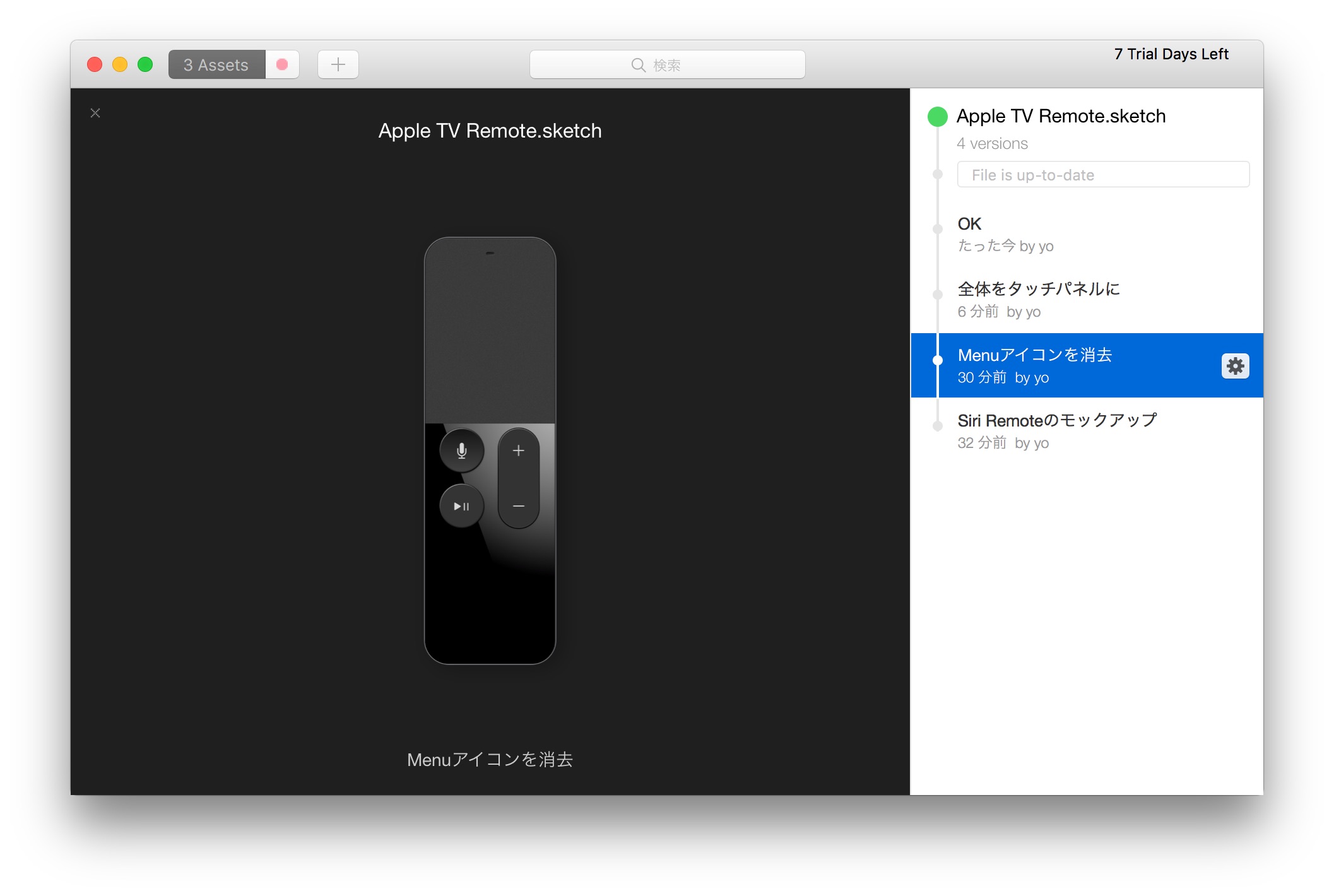 ファイルが変更され、保存されると通知センターで通知し[返送]やバージョン履歴ウィンドウからコミットすることが可能で、保存されたファイルをクリックするとプレビュー表示になり、複製やファイルの復元をすることが出来ます。