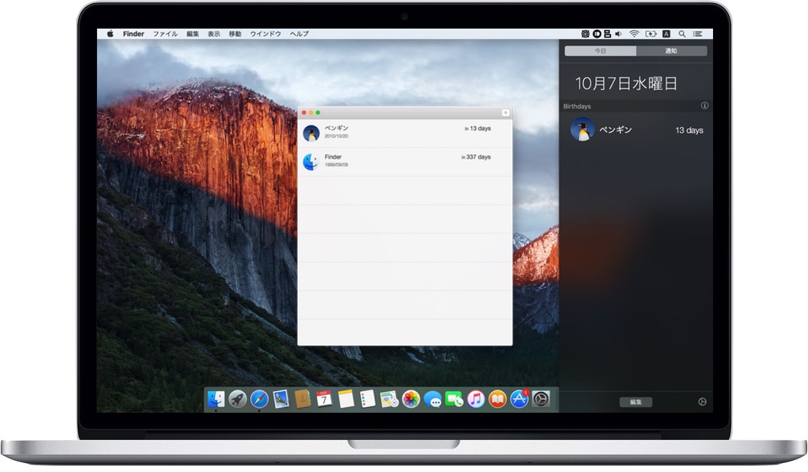 登録したユーザーの誕生日が近づくと通知センターに表示&通知してくれるMac用Widgets「Birthdays」がリリースされています。詳細は以下から。