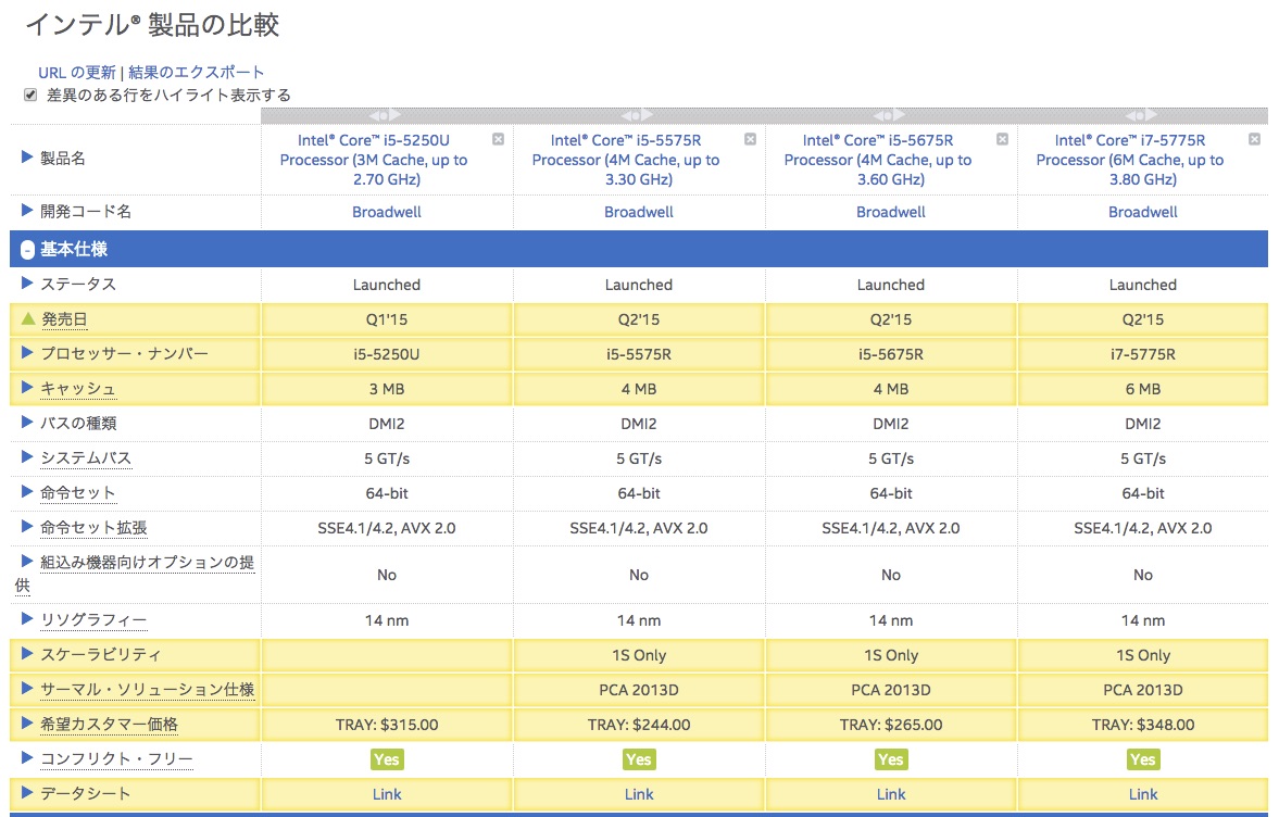 iMac (21.5inch, Late 2015)モデルに採用されているCPUのまとめです。詳細は以下から。