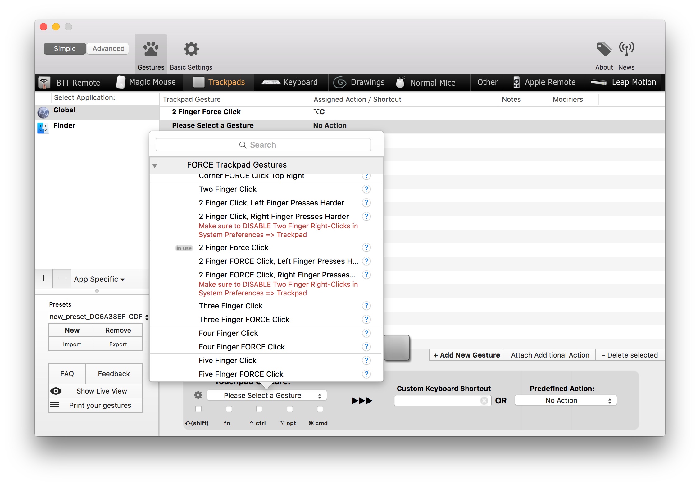 Will make it work with BTT and all of BTT’s Force Touch gestures soon. Requires some refactoring though, so it may take a few days.