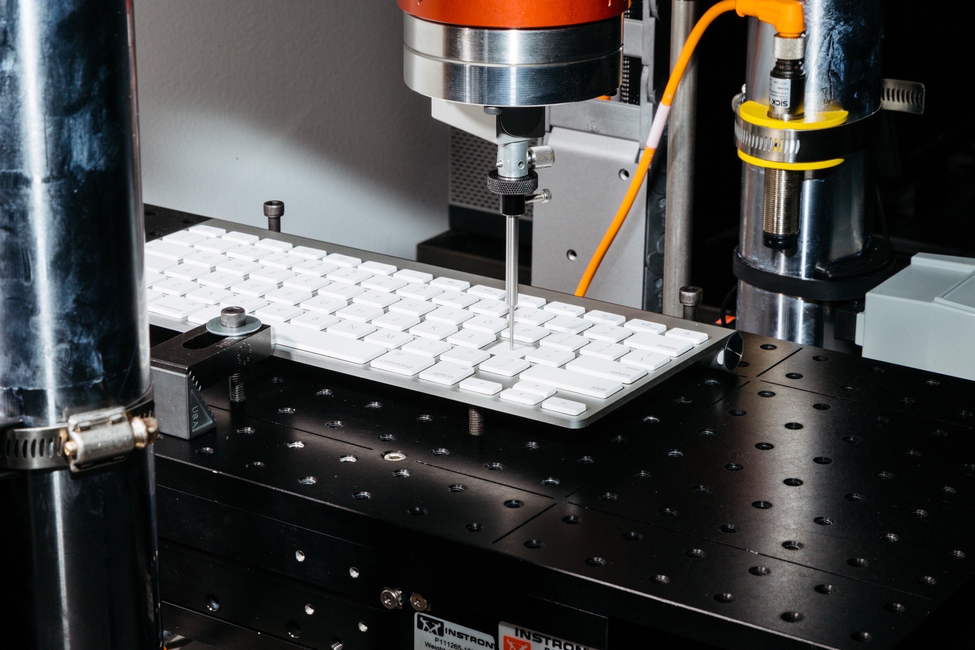 AppleのInput Design Labは主にキーボードやマウス、トラックパッドなどMac用のアクセサリーのプロトタイプをテストする実験室で、Input Design Lab内にあるUser Test Labでは被験者が実際にAppleのキーボードを利用した時の筋肉疲労や筋肉記憶、音響、精度を調査、