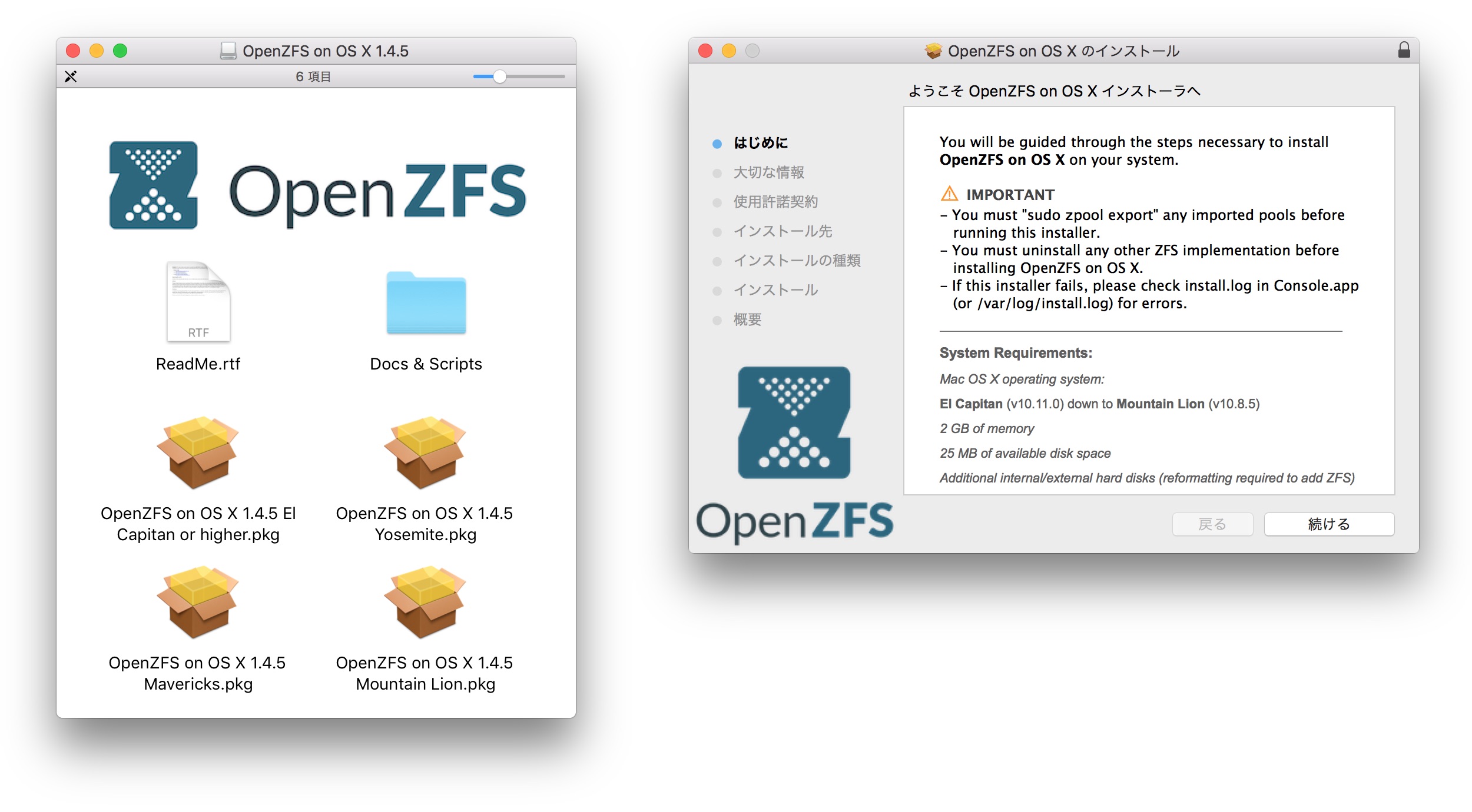 OpenZFS on OS XはOpenZFSの公式サイトおよびGitHubで公開されており、OS X 10.8 Mountain Lion ~ OS X 10.11 El Capitanそれぞれに専用のインストーラーが用意されているので、MacでもZFSを利用している方は関連リンクから公式サイトなどへどうぞ。