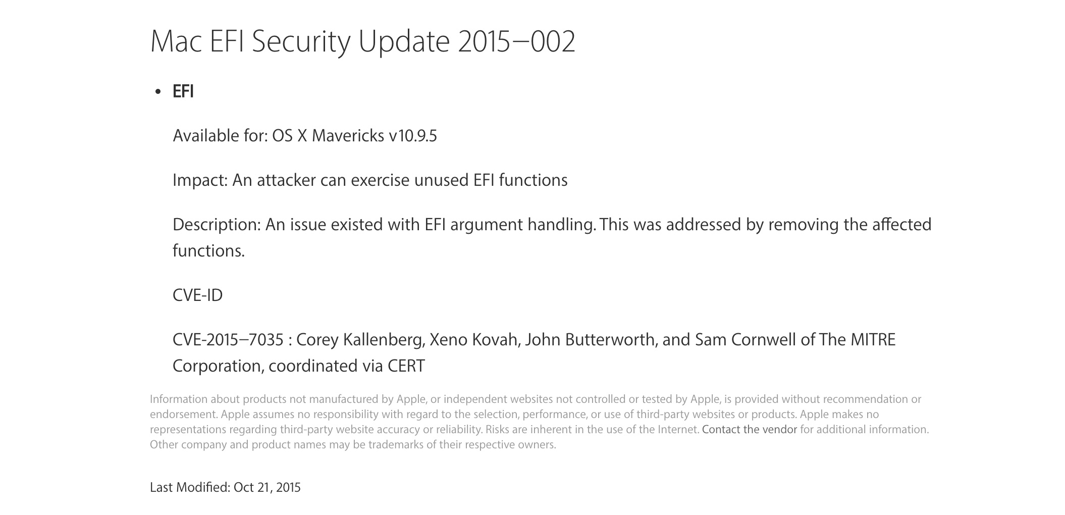 [About the security content of Mac EFI Security Update 2015-002 – Apple Support]