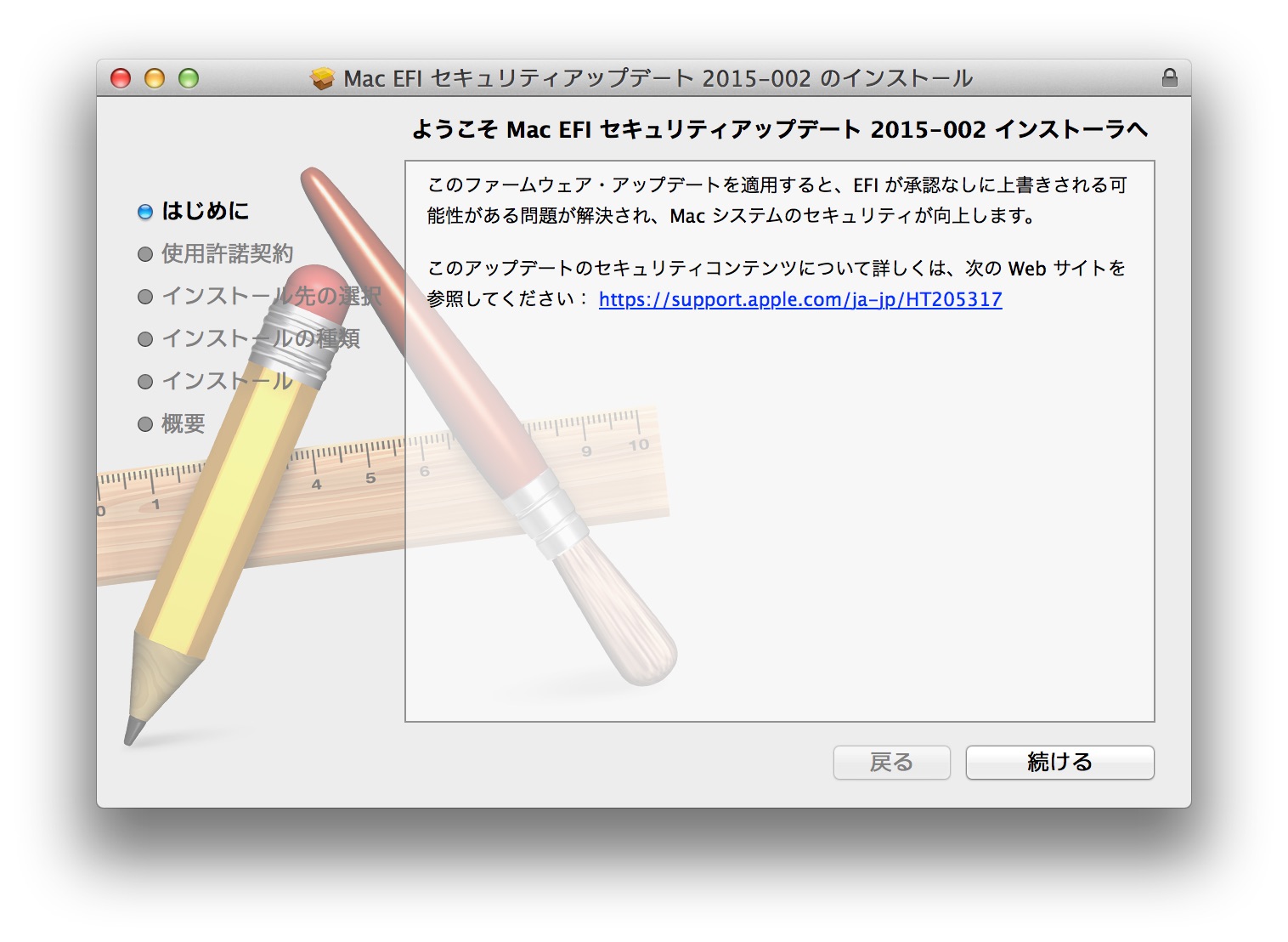 このアップデートは以前公開された「Mac EFI Security Update 2015-001」と同様、MacのEFIに存在するThunderstrike脆弱性が修正され、EFIが認証無しに上書きされてしまう問題が解決されます。