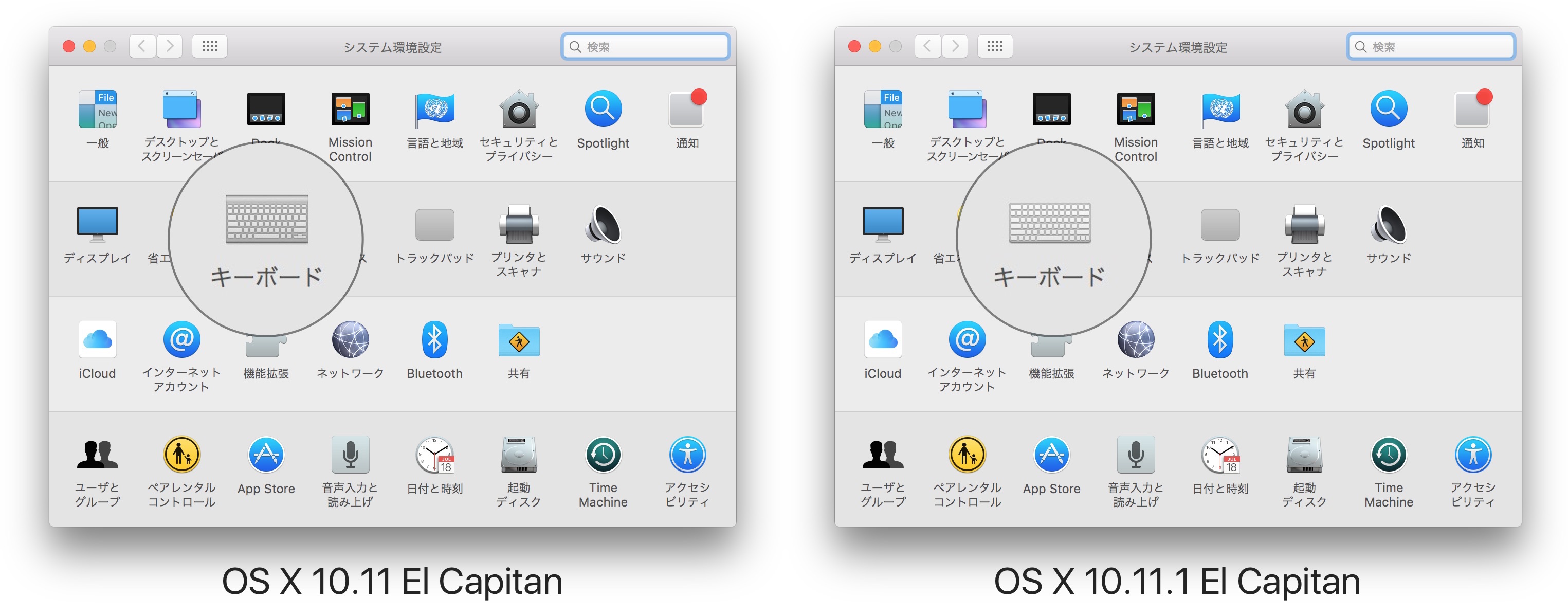 本日AppleはEl Capitan初のアップデートなる「OS X El Capitan アップデート 10.11.1」を公開しましたが、AppleはOS X 10.11.1からOS X内にあるキーボードやマウス、トラックパッドなどの画像を先日発売した新しいMagicデバイスの画像に変更しています。
