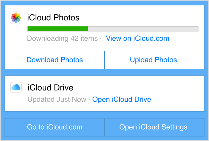 - ステータスバーのiCloud for Windowsアイコンをクリックすると現在の状態が確認できます。