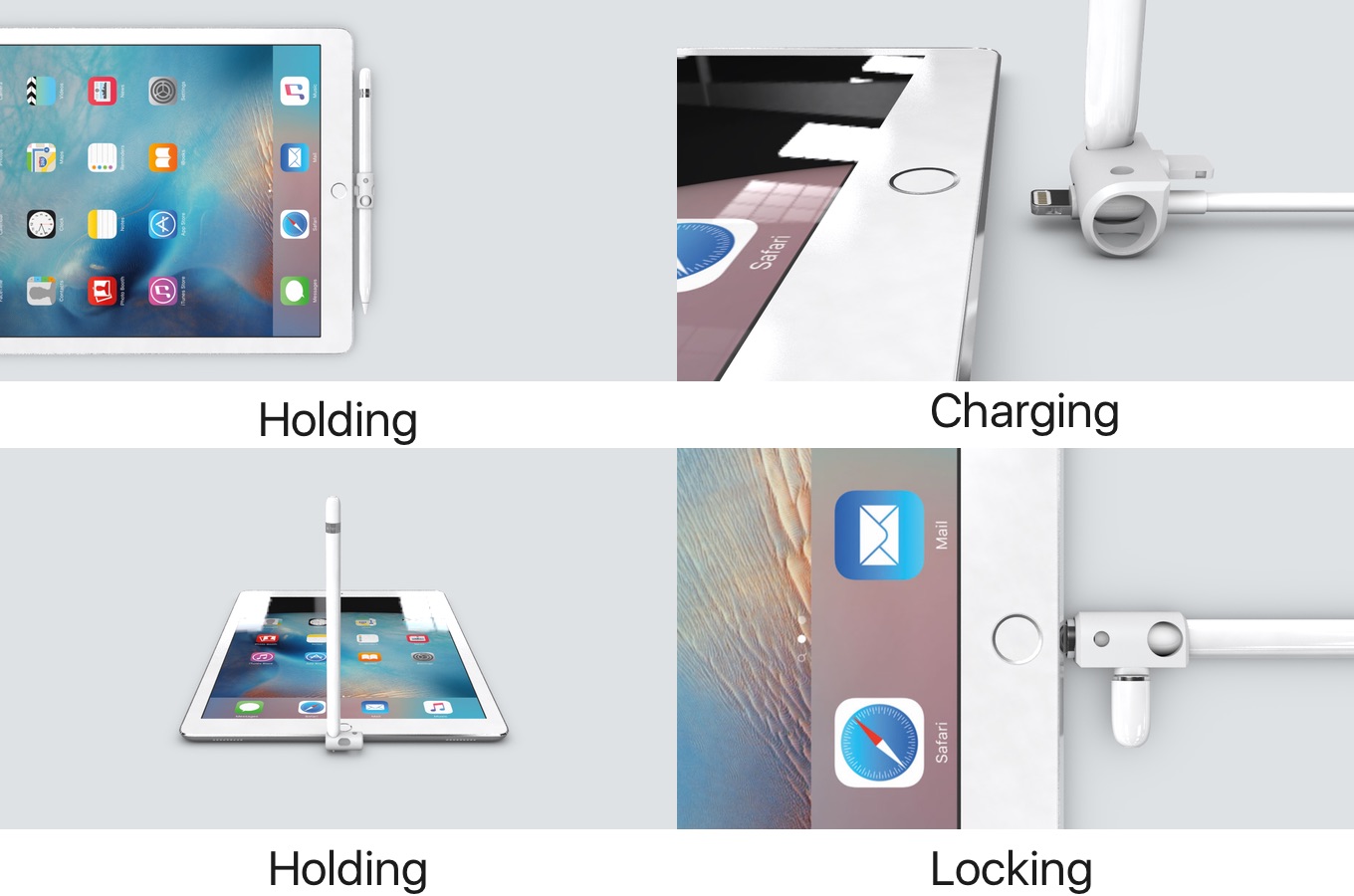 HoldingやChargingではQuarterをApple PencilのDockとして、LockingではApple PencilをiPad ProのLightningポートに接続し充電している間にApple Pencilのキャップを無くさないように接続しておくことも出来るようになっています。