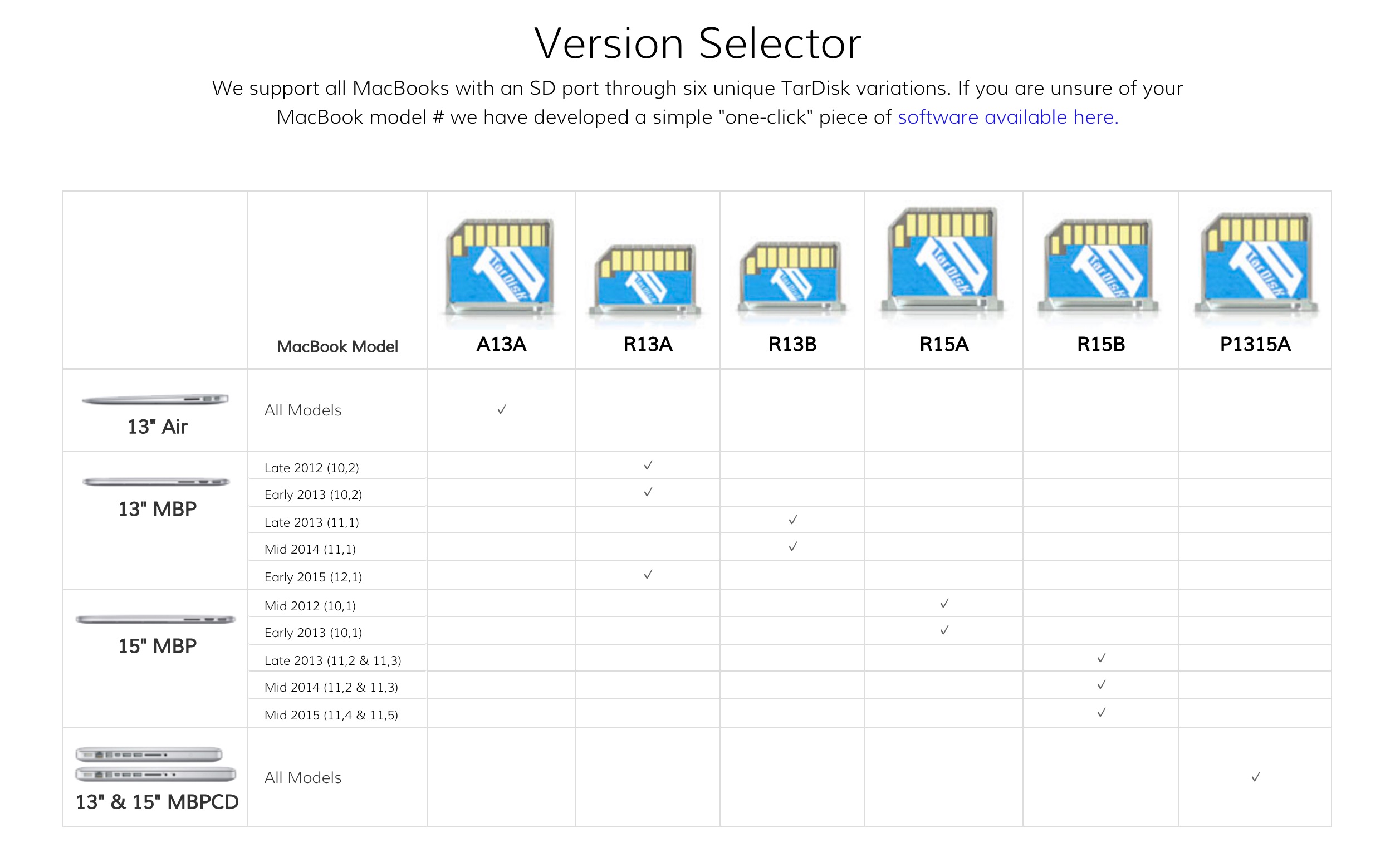 TarDiskの価格は128GBが149ドル、256GBが399ドルでMacBook AirやMacBook Proのモデル別に6種類が用意されており、自分のMacBookにあったTarDiskを特定できる「TarDisk Selector」というアプリも公式サイトで配布されているので興味のある方は公式サイトへどうぞ。