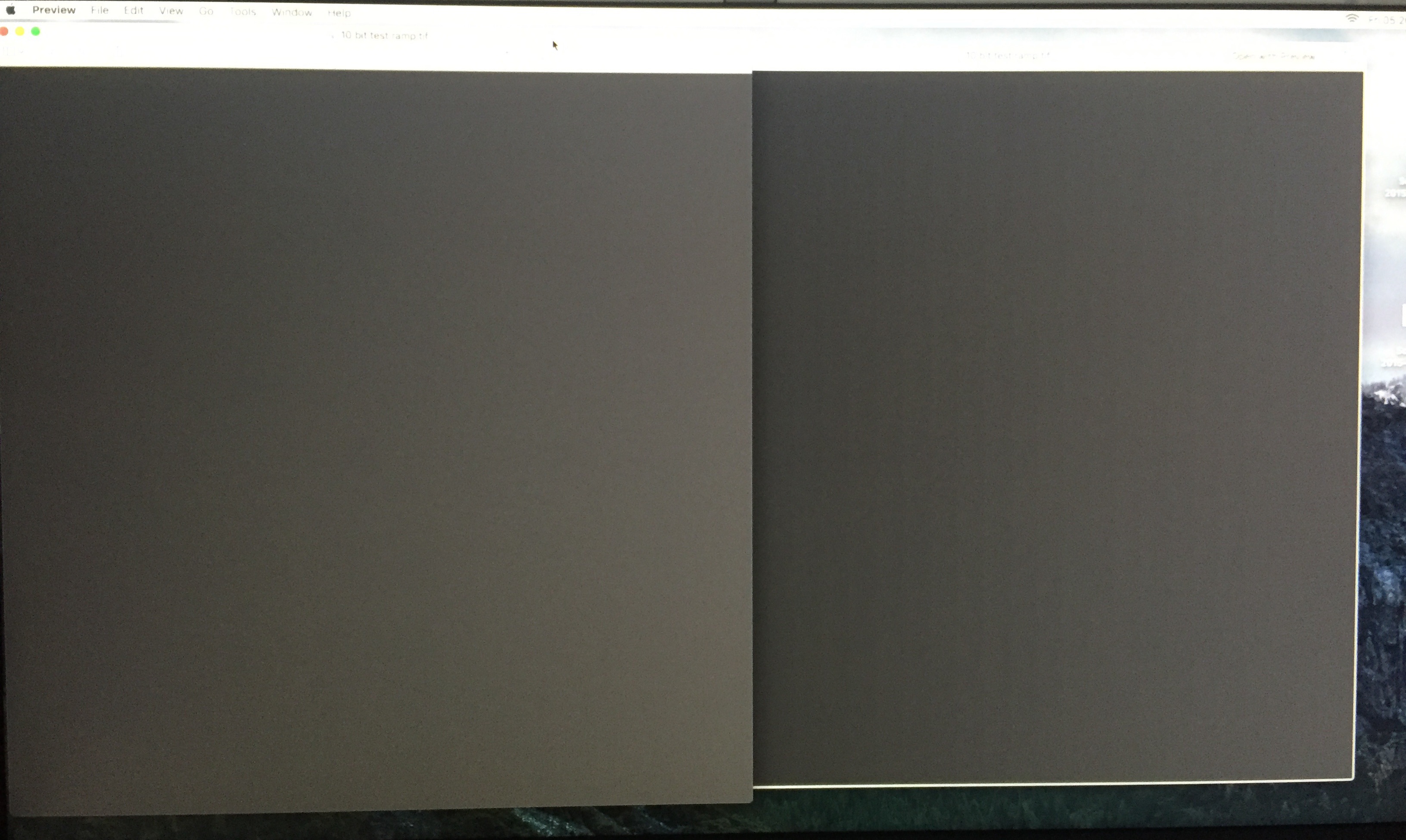 iPhone photo showing smooth 10bit gradient on the left (preview) vs quick look on the right