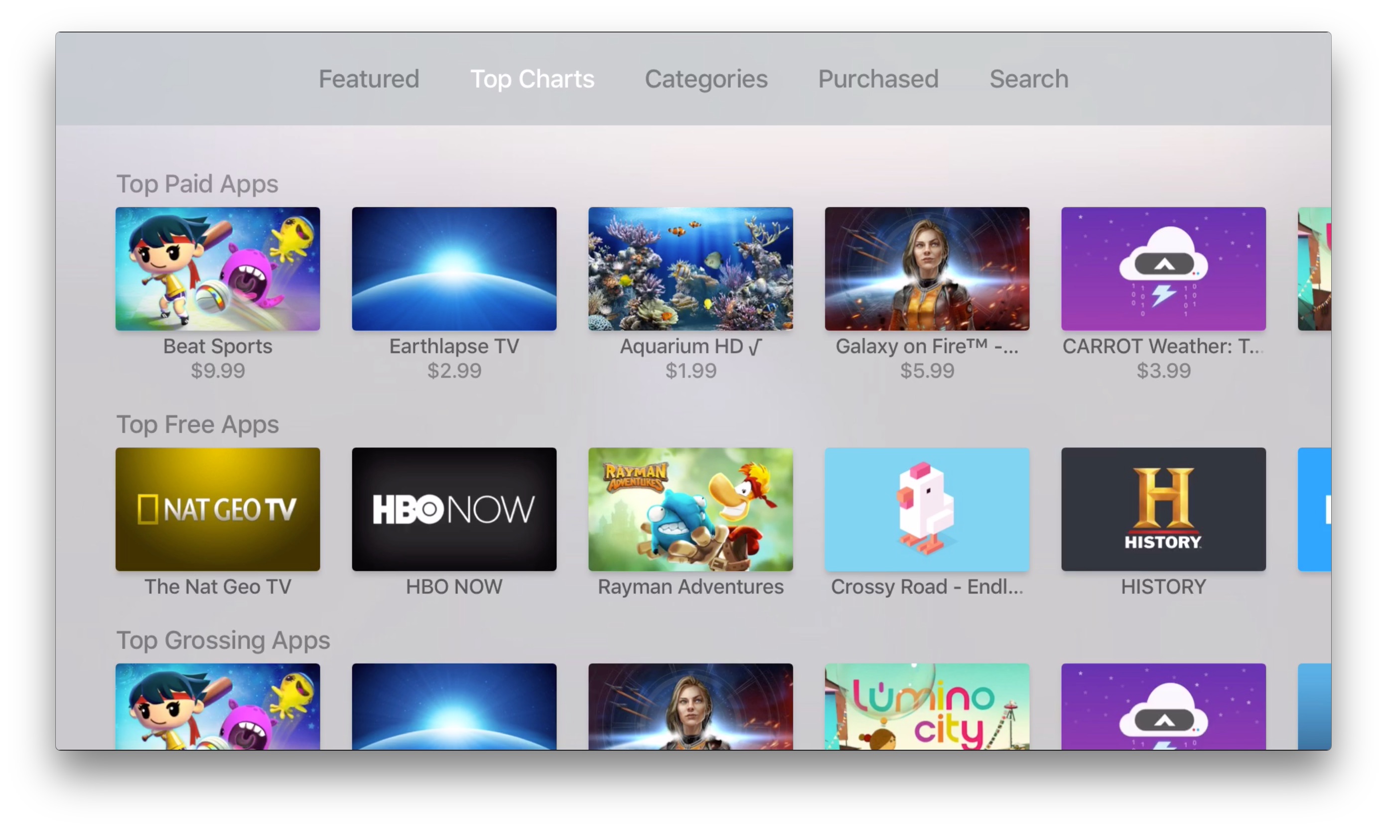 Appleが日本のApp StoreでもtvOSアプリの無料&有料およびトップセールアプリのランキング表示を開始しています。詳細は以下から。