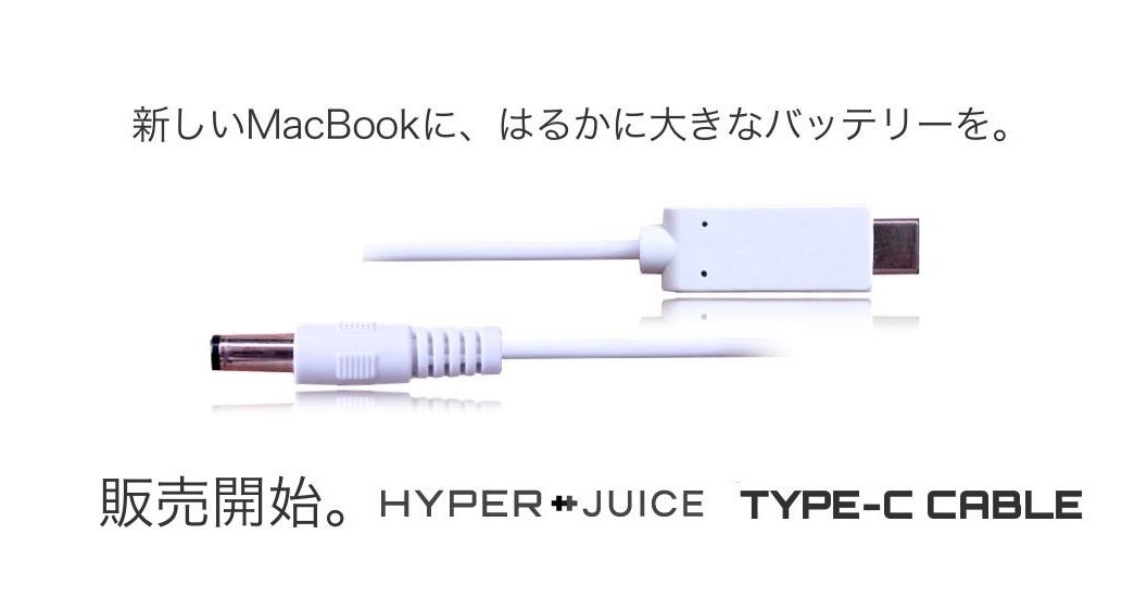 しかし、MacBook (Retina, 12-inch, Early 2015)は一般的なUSB-Cが採用されたことでUSB給電仕様であるUSB-PDが利用でき、HyperJuiceと新しいMacBookを専用の「Type-C DC ケーブル」だけで接続、DCアウトから29WのApple純正アダプタと同じだけの電源供給が可能なため他社のモバイルバッテリーの半分以下の時間でフル充電が可能になっているそうです。