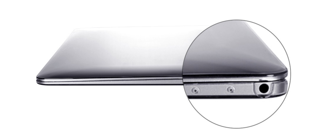 また、底面カバーには滑り止めが付いており、MacBook (Retina, 12-inch, Early 2015)に搭載されているオーディオ、USB-C、デュアルマイクポートを塞がないよう加工がしてあります。