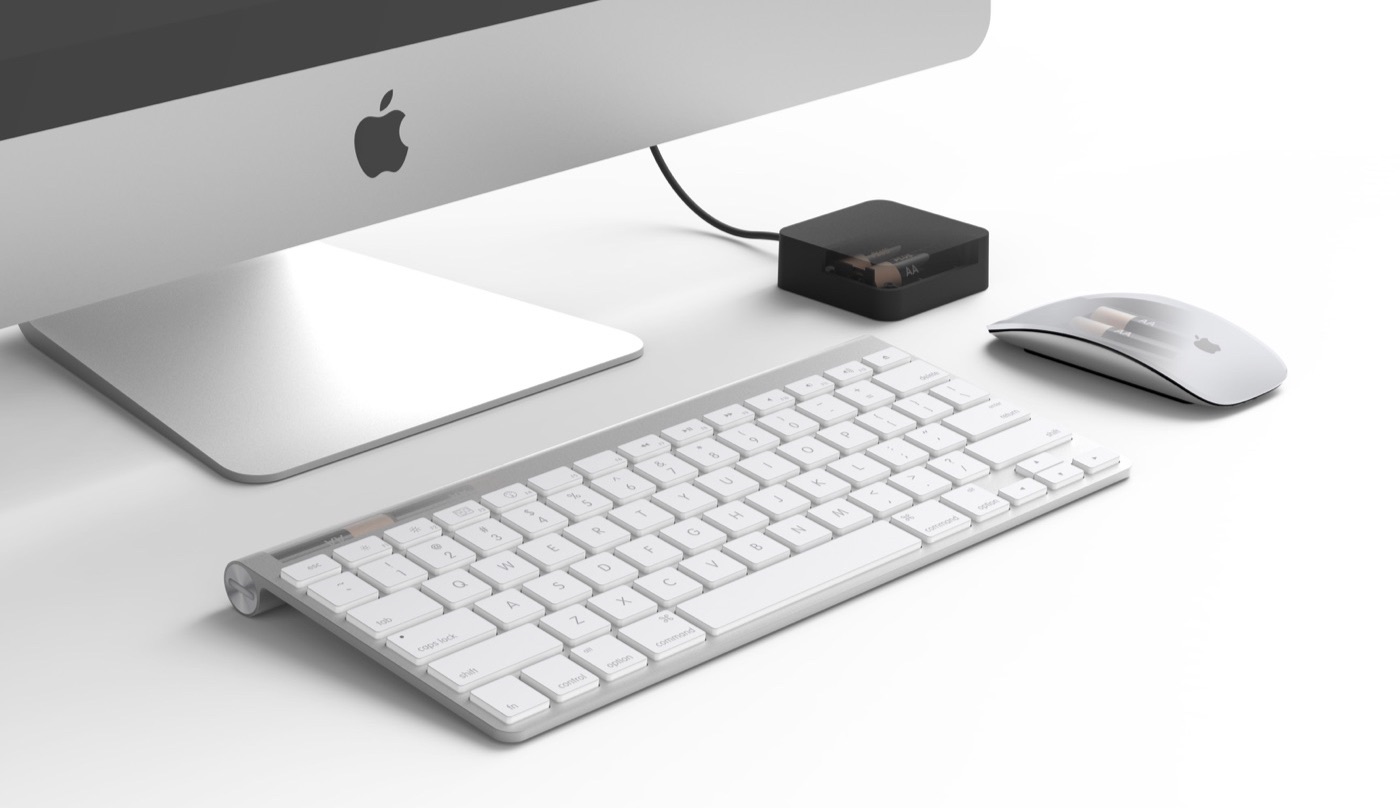 通常、電池式のApple製品のキーボードやマウスに必要な電池は2本です。その2本を使用中に、次に使う2本を充電しておくことができるのです。
