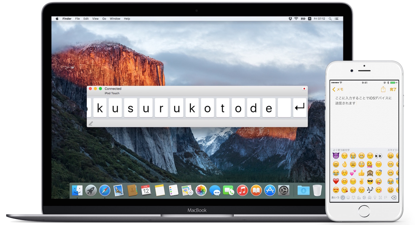 Type2Phone 3.0ではiOS 9およびEl Capitanに最適化され、iOS 9キーボードのスペシャルメニュー(ファンクションキーやコンシューマーキーなど)に対応し、Messagesアプリやショートカットキーの改善なども行われています。