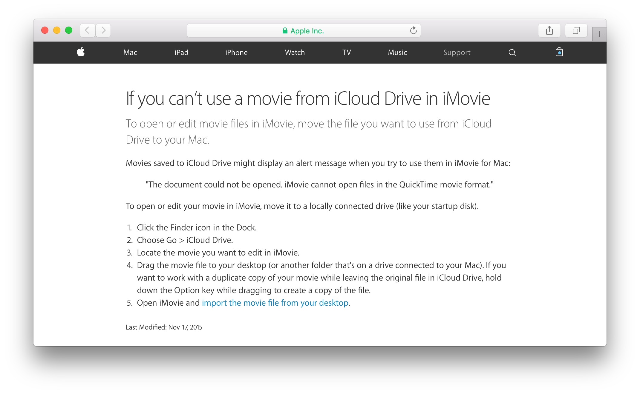 Appleが「iMovieからiCloud Drive上の動画が開けない不具合がある」としてサポートドキュメントを公開しています。詳細は以下から。