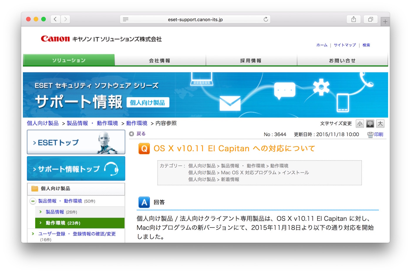 [OS X v10.11 El Capitan への対応について – ESETサポート情報]