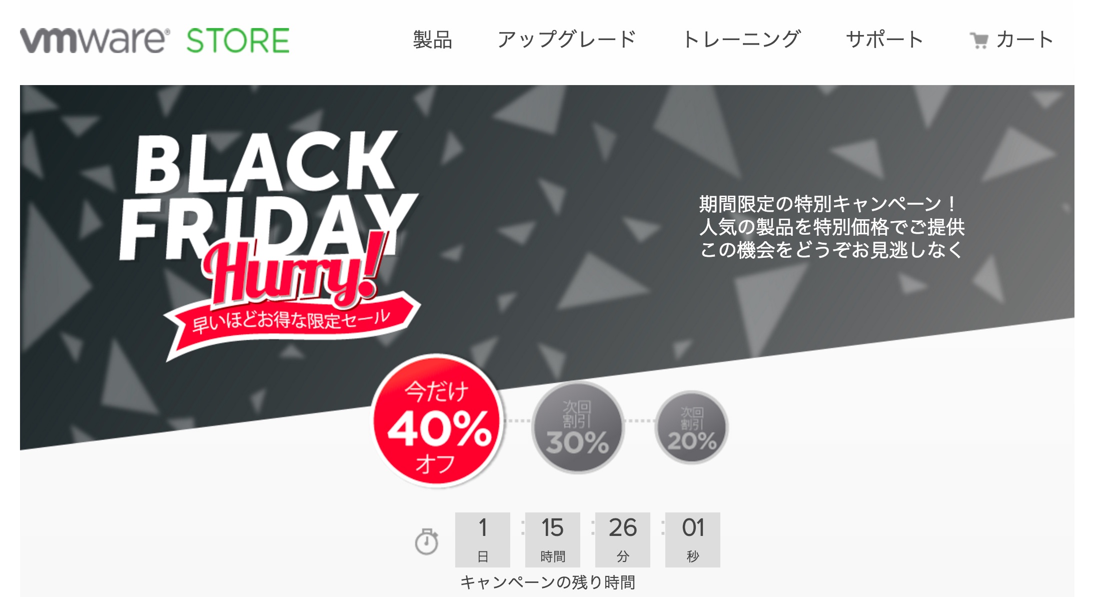 VMware Inc.が対象商品を早く購入するほど割引率が高くなる「Black Friday」セールを開催しています。詳細は以下から。