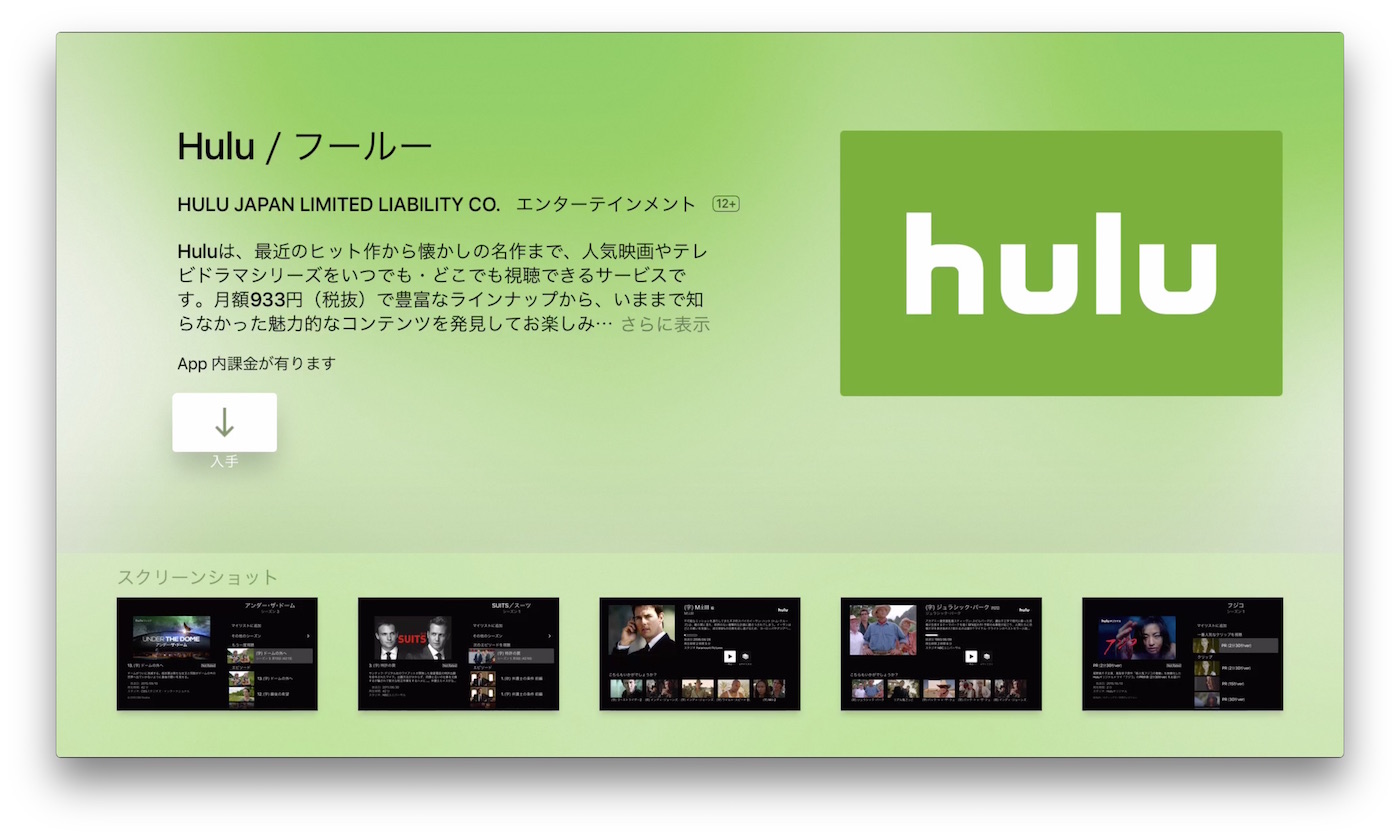 Apple TV (第4世代)でHuluを利用してみたい方はApp Storeから「Hulu」で検索し、アプリをダウンロードしてみてください。