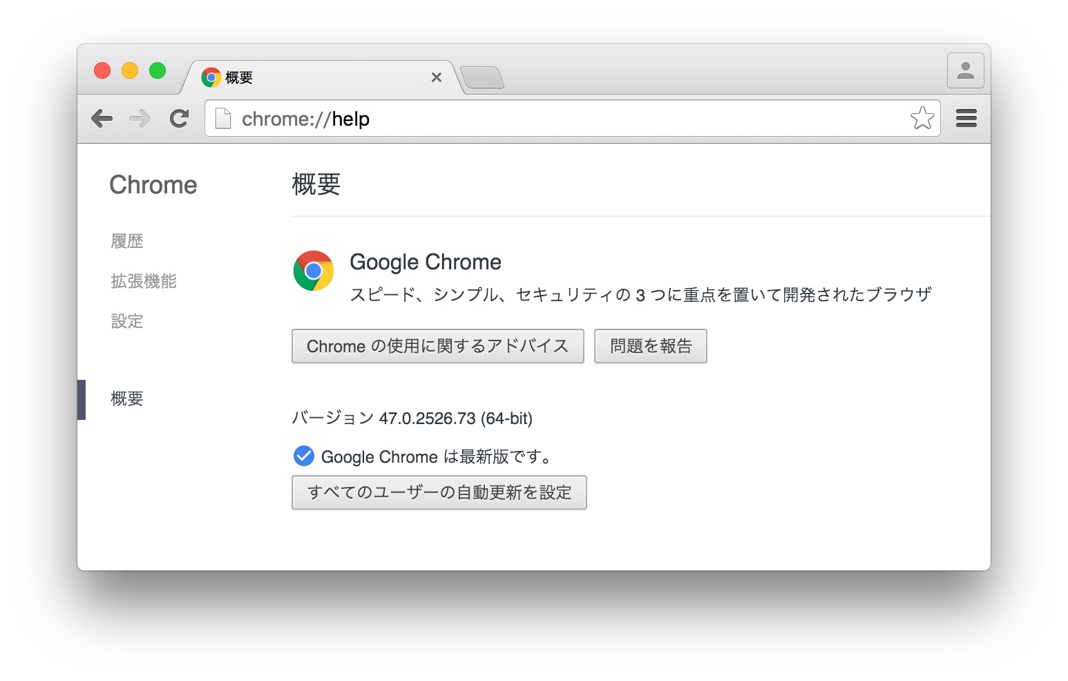 Googleは現地時間12月01日、安定版 Google Chrome v47(47.0.2526.73)をリリースしたと発表しています。Chrome BlogによるとアップデートされたChromeはWindows, Mac, Linux版で、41件の脆弱性が修正されており、大きな変更点や新機能については同Blogで今後公開していくとしています。