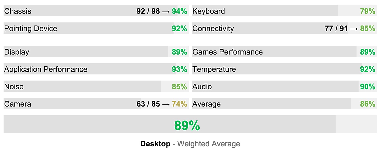 NotebookCheckはこの他にもファンノイズや各解像度でのゲームのFPS数、ストレージパフォーマンス、スピーカーの最大音量などを評価しており、総評としてはどれも好評なものの、価格帯が高いことと拡張性の低さが問題だとまとめています。