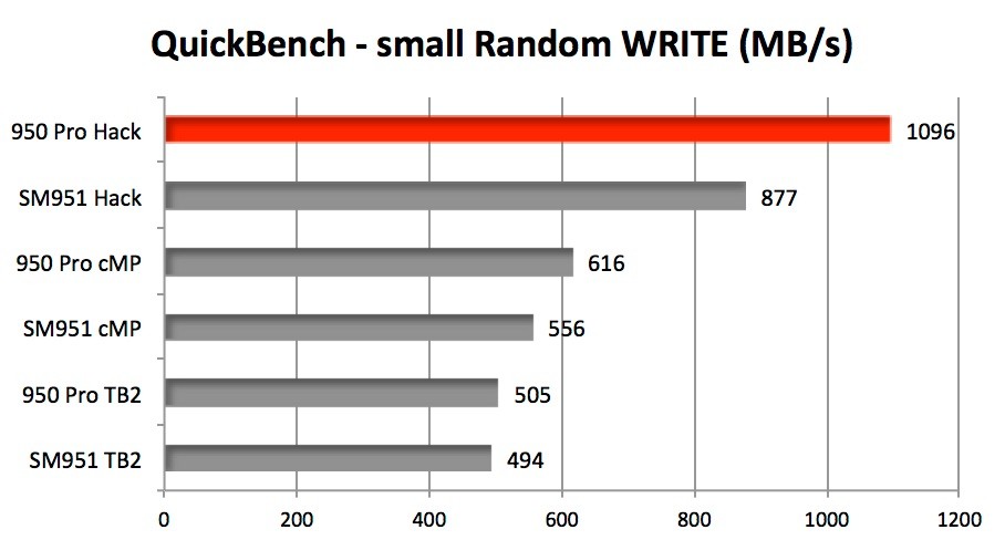 We have used various M.2 PCIe adapters to test SM951 flash blades, but most lack a heatsink (or a fully effective one). Angelbird has created a new M.2 NGFF PCIe adapter, the Wings PX1, with the most effective heatsink we have tested to date. And thanks to a new NVMe driver from MacVidCards, we were able to test it with a Samsung 950 Pro NVMe flash blade (as well as an SM951 AHCI flash blade).