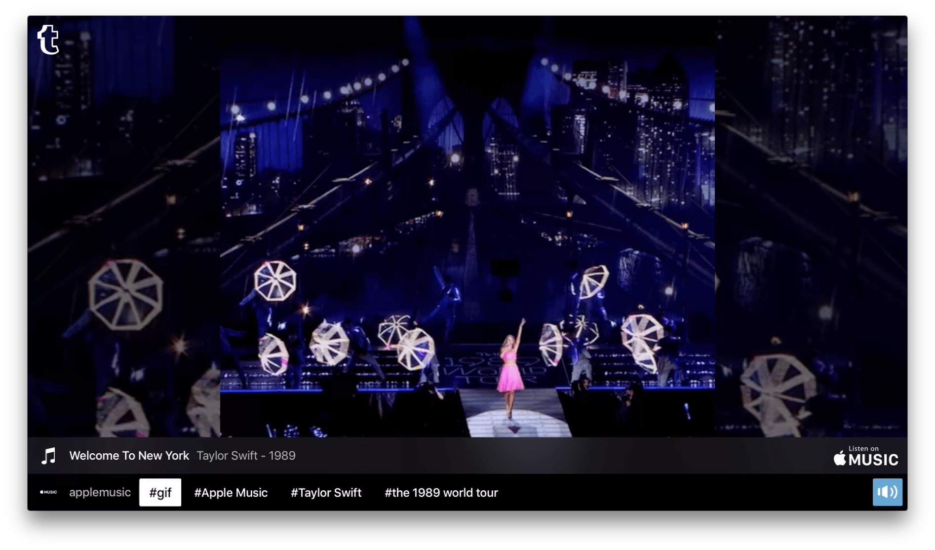 Tumblr TVはGIFアニメをスライドショーで流せる機能の他に、ハッシュタグで検索できる機能や動画に関連した音楽をApple Musicで聴ける機能が搭載されています。