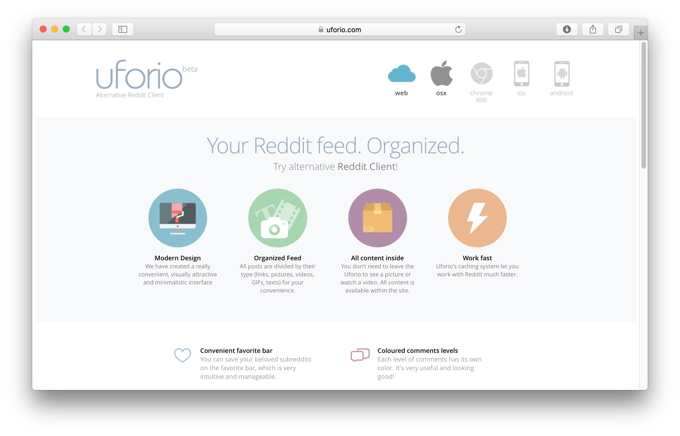 Uforioは現在Beta段階で、Web版とMac版が公開されており、Chrome AppやiOS, Android版の開発も行われるようなので、Redditユーザーの方は利用してみてください。