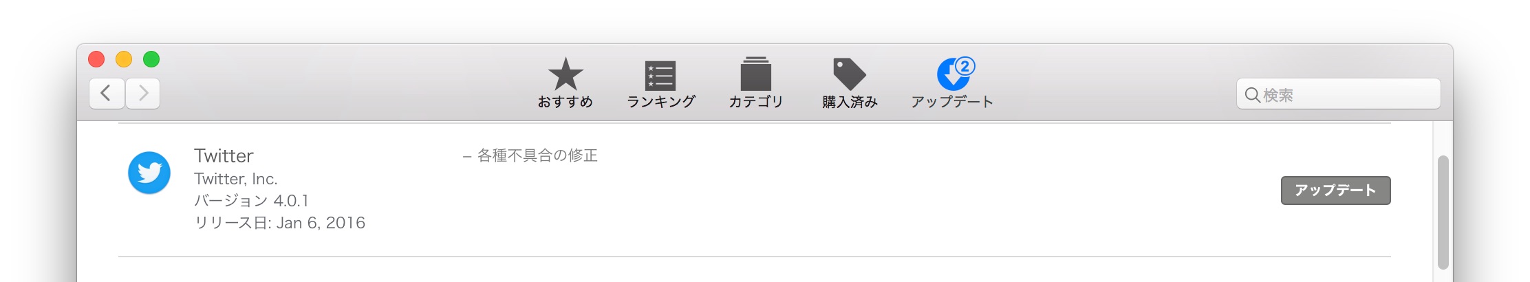 Twitter, Inc.が複数の不具合を修正したMac用Twitterクライアント「Twitter v4.0.1」をリリースしています。詳細は以下から。