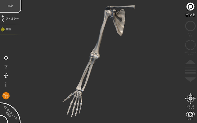 アプリは日本語および4K解像度に対応し、通常版(1,800円)の他に上肢だけを観察できるLite版も用意されており、筋肉の各部を1つ1つ外しながら骨格を観察したり、アーティストが描いた画像を見ることが出来ます。