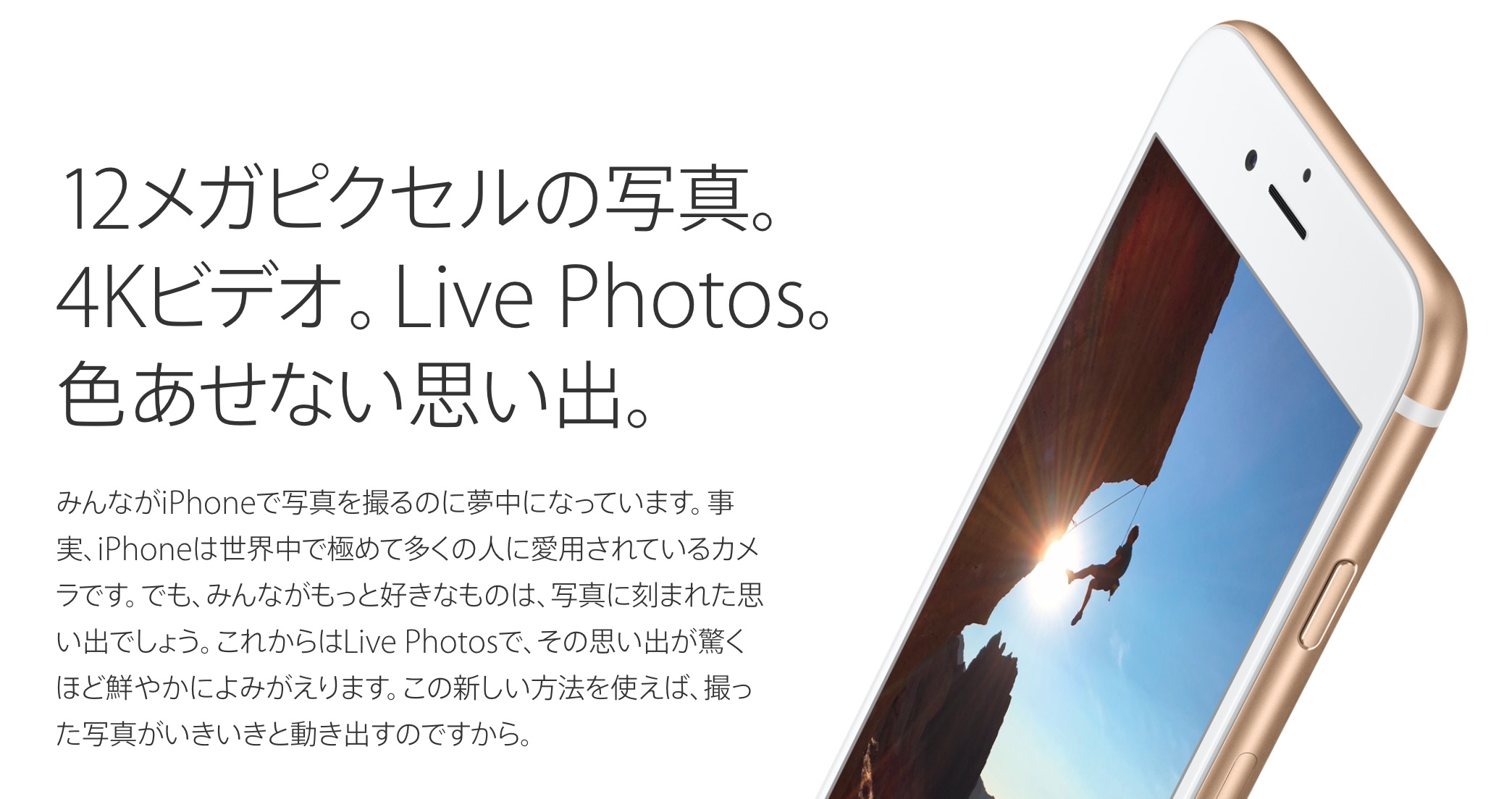 「モーメント」表示では、午後のハイキングで撮った写真とビデオなどのように、撮影時刻と撮影場所が近い写真がグループ化されます。写真の撮影場所を加えたり変更するのも簡単です。iPhoneで撮ったLive Photosの写真は、その上にカーソルを乗せるといきいきと動き出します。