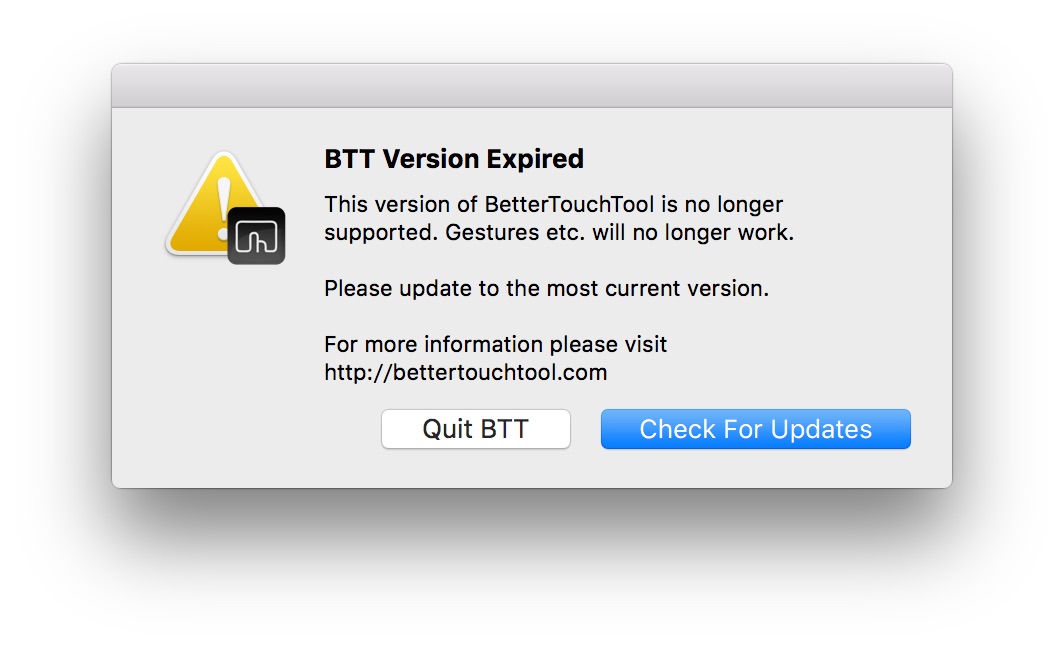 BetterTouchTool versions expired today