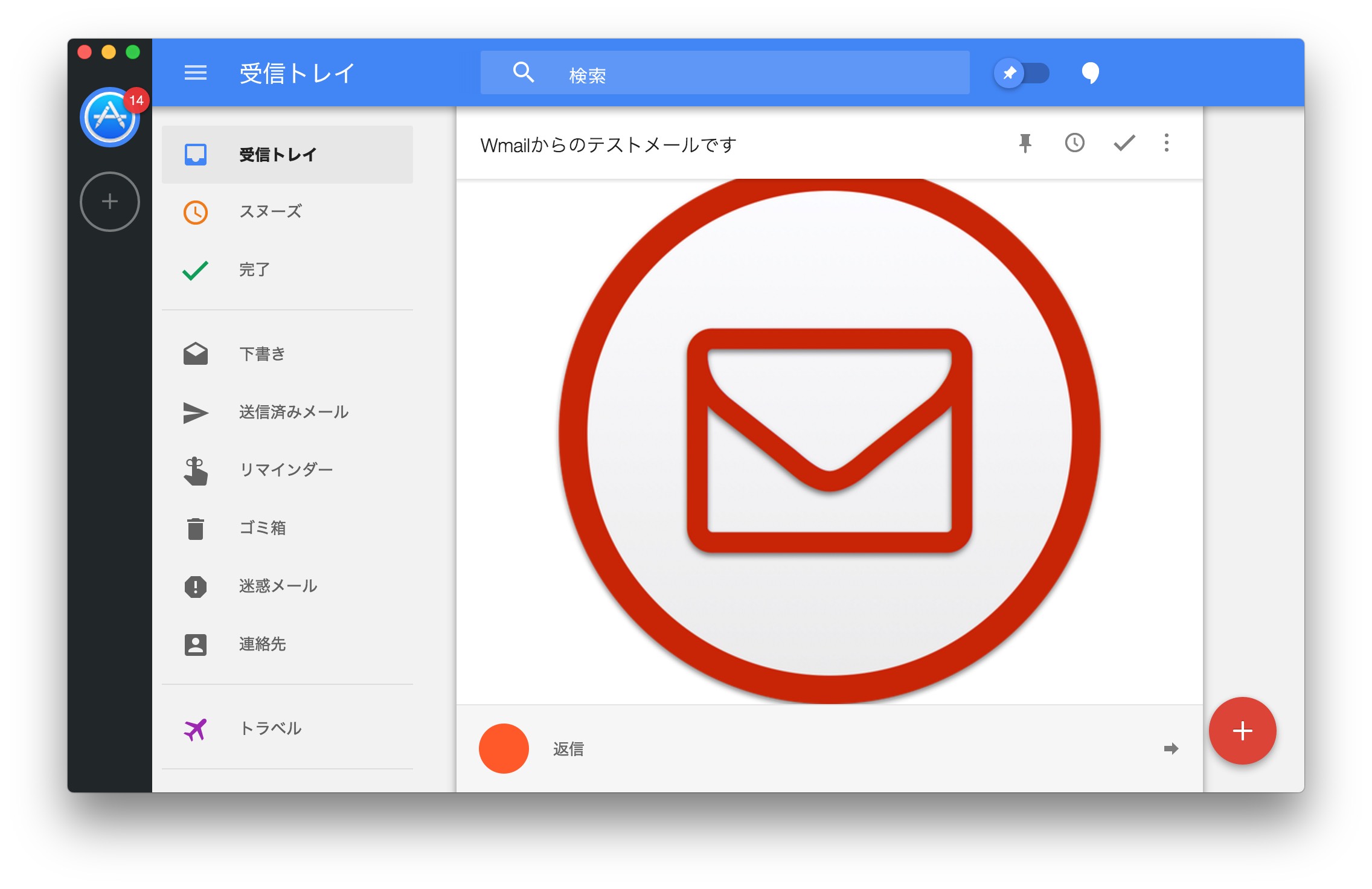 GoogleのメールサービスInboxとGmailに対応したMac用lメールクライアント「Wmail」がリリースされています。詳細は以下から。