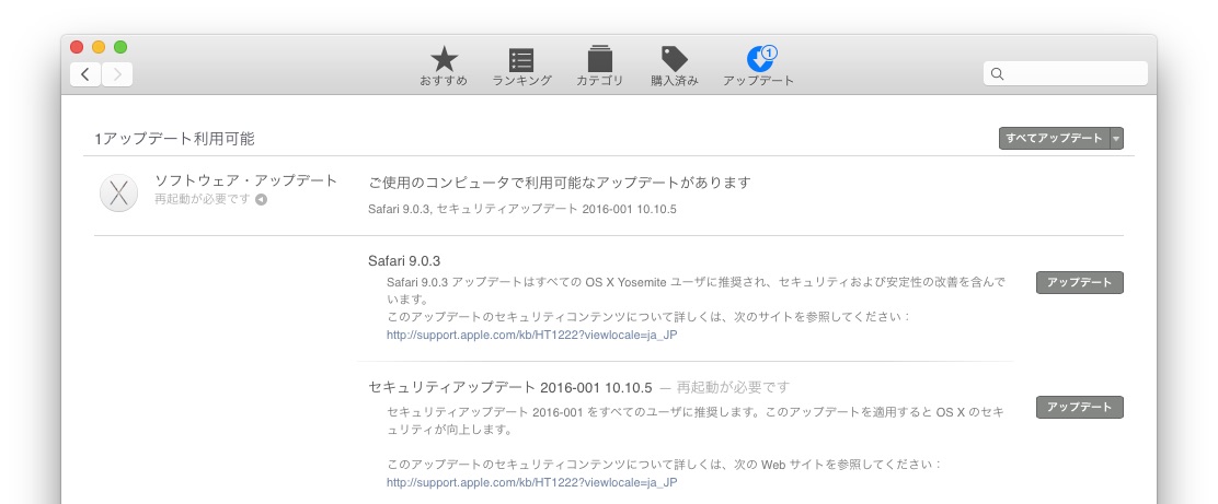 - Download Security Update 2016-001 Yosemite (369 MB) – Apple サポート